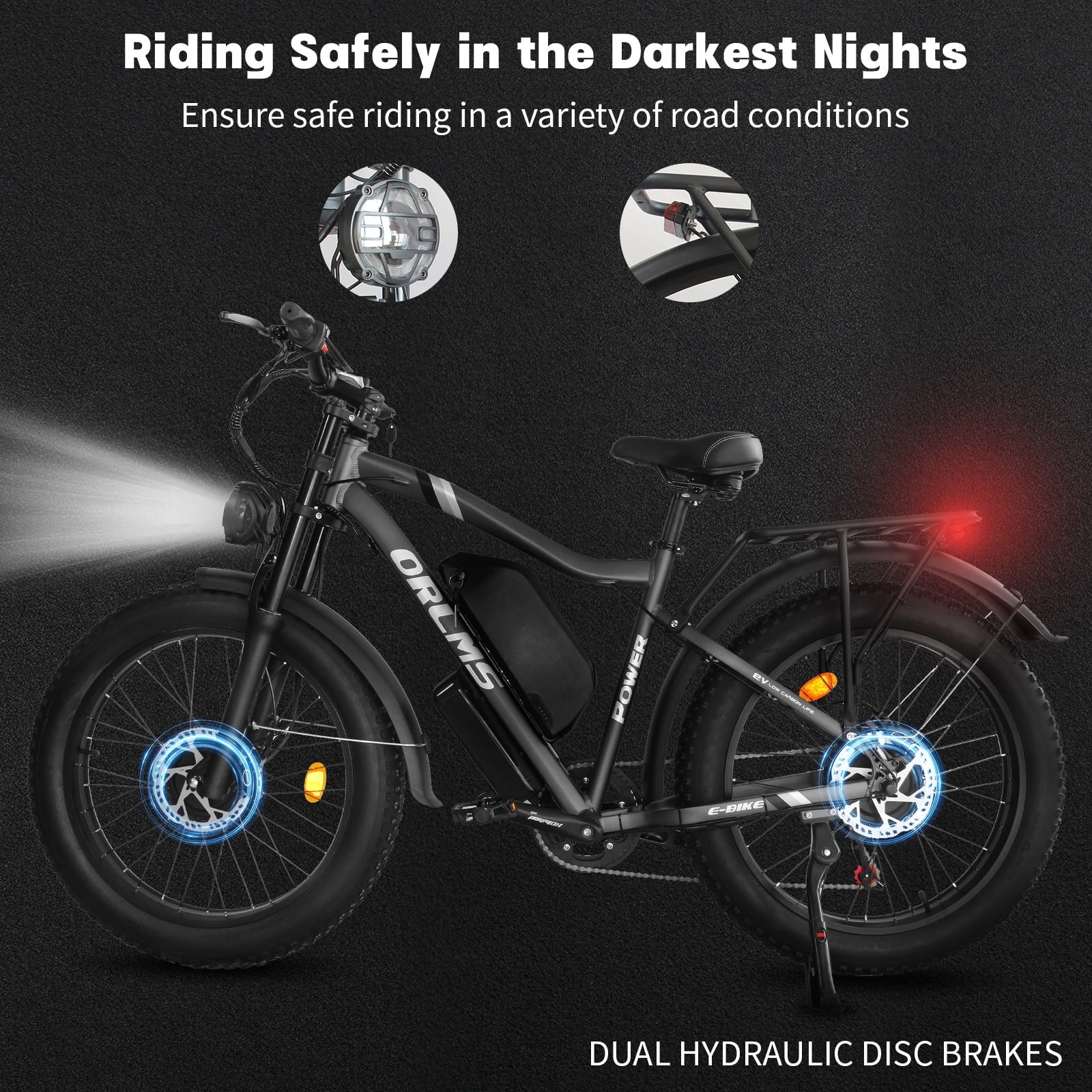 Advanced Safety Features:Bright LED headlight, taillight, and responsive hydraulic brakes keep you safe on every ride.