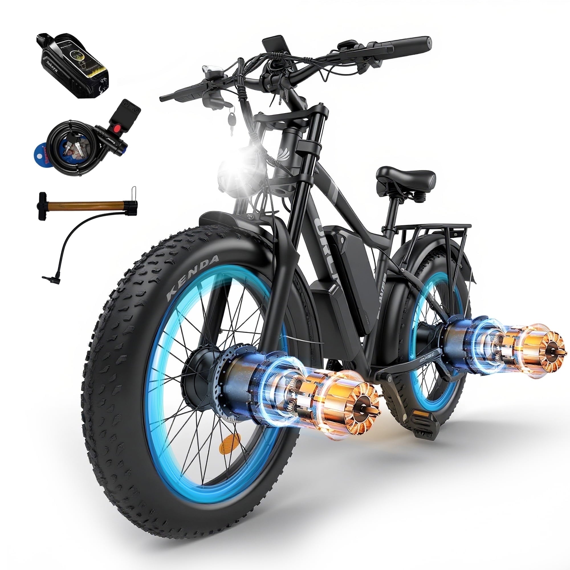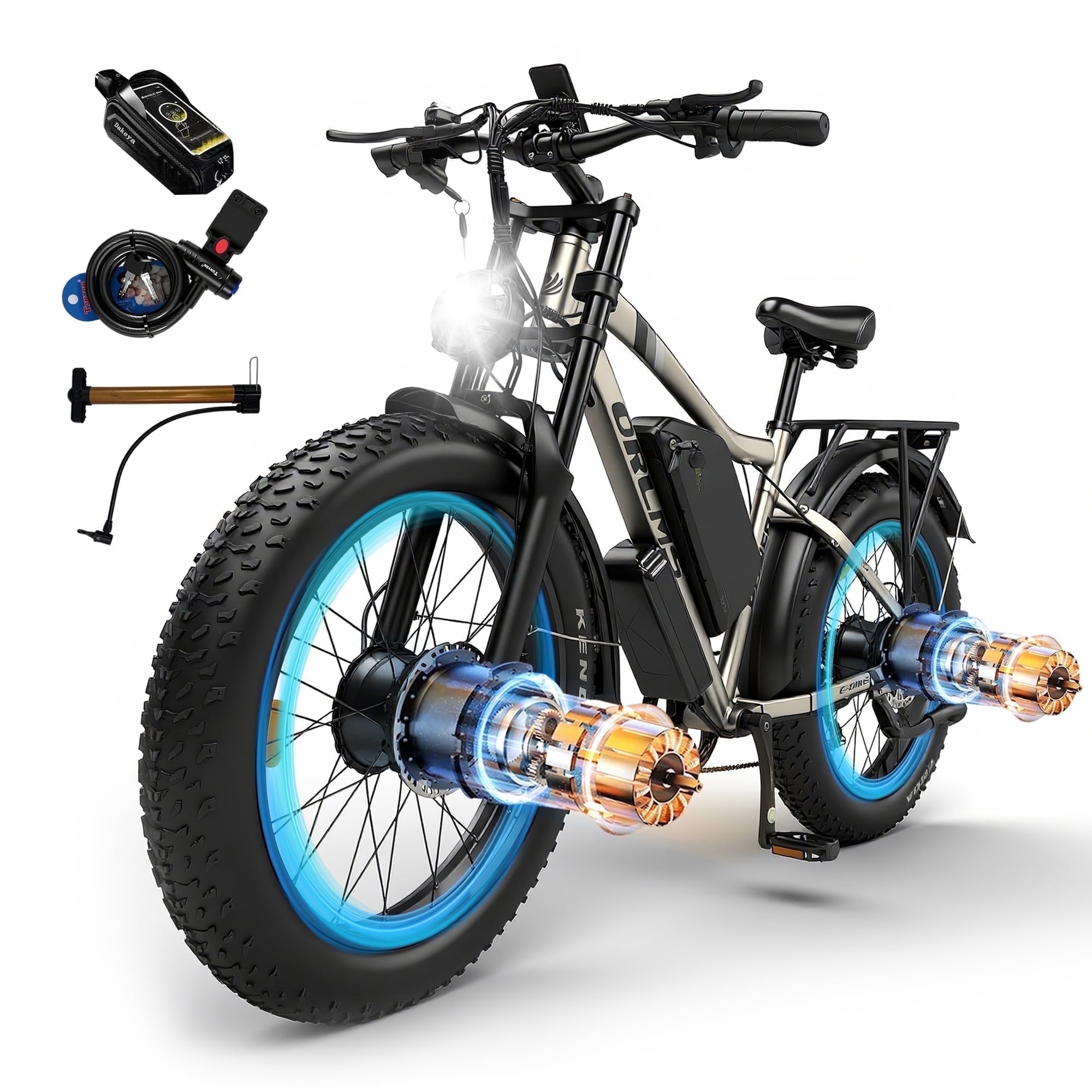- All-Wheel Drive (AWD) System:Dual-motor AWD ensures maximum traction and stability, making this e-bike perfect for hunting, mountain adventures, and winter commuting.