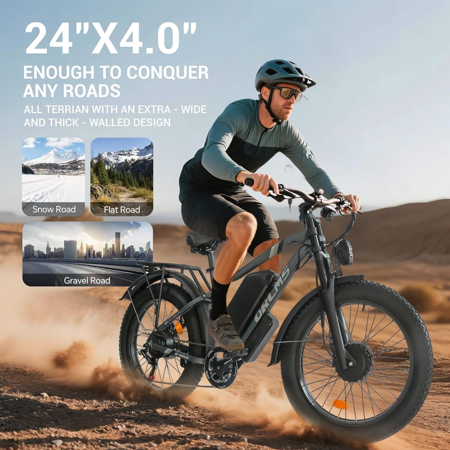 - 24″ x 4.0 Fat Tires:Tackle any surface—sand, snow, mud, or rocky trails—with confidence thanks to ultra-grip, puncture-resistant fat tires.