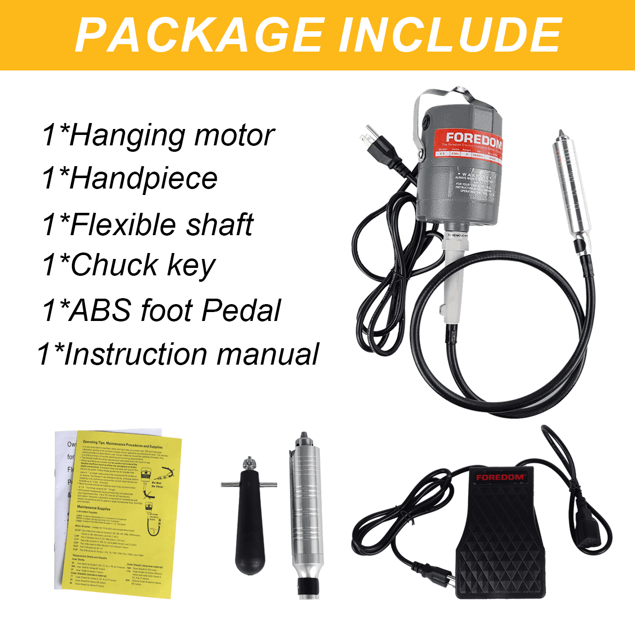 - Professional SR Hanging Design for Easy & Precise Work:Equipped with flexible shaft drive and hanging structure, plus a hand-held drill chuck, this flex shaft kit simplifies operation even in delicate tasks. It comes with a stepless electronic foot pedal (ABS plastic, heat-resistant) for easy speed control and a high-precision 3-jaw chuck (0-6mm clamping range) that ensures stable, reliable holding—ideal for high-precision engraving, grinding, and polishing.
