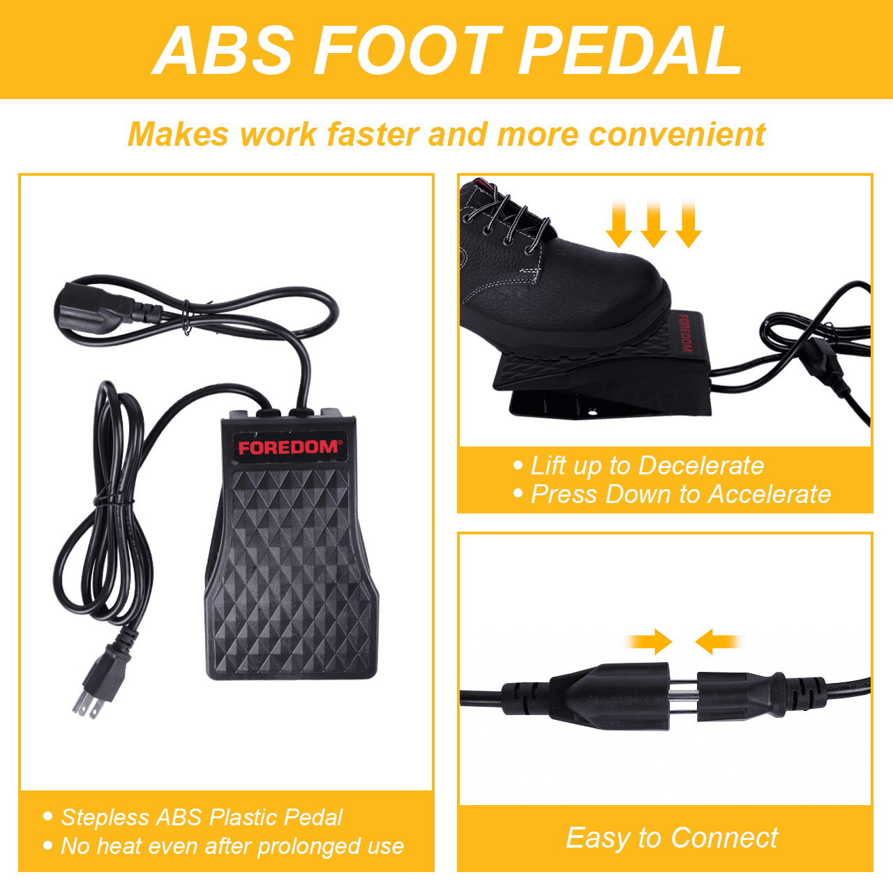 - Stepless Speed Foot Pedal for Flexible Control:The ABS plastic foot pedal is safer than ordinary materials, blocking rapid heat production and transfer. A built-in adjustment screw allows you to set constant speed or fine-tune rotating speed, giving you full control over different tasks (e.g., gentle polishing vs. heavy grinding) without manual hand operation.