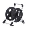 This 2 in 1 has an easy carry handle for mobility, a foot support and a cushion grip handle for easy winding. Can be held/carried, or sat on the ground.