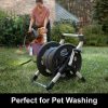 - Holds up to 200′ of expandable garden hose