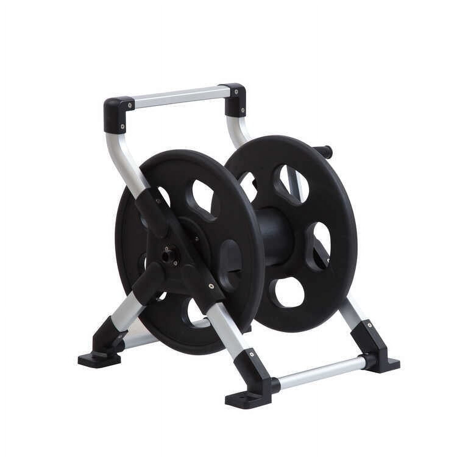 Liberty Garden Products Explorer Series Handheld 306 2 in 1 Floor Mount & Handheld Aluminum Hose Storage Reel is a lightweight and heavy duty answer to your watering needs. This rust free handheld holds 150+ ft of standard 5/8 vinyl hose 100ft 3/4 vinyl hose industral and up to 200+ ft of expandable hose.