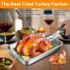 - 【BASKET & Roasting Pan】Drainer Bucket is designed with clip-on handles for hands-free draining and easy pouring.The bottom is raised on three feet to prevent food from sticking to the bottom.Roasting pan is mirror polished, which is both beautiful and practical. They are the perfect choice for your outdoor cooking!