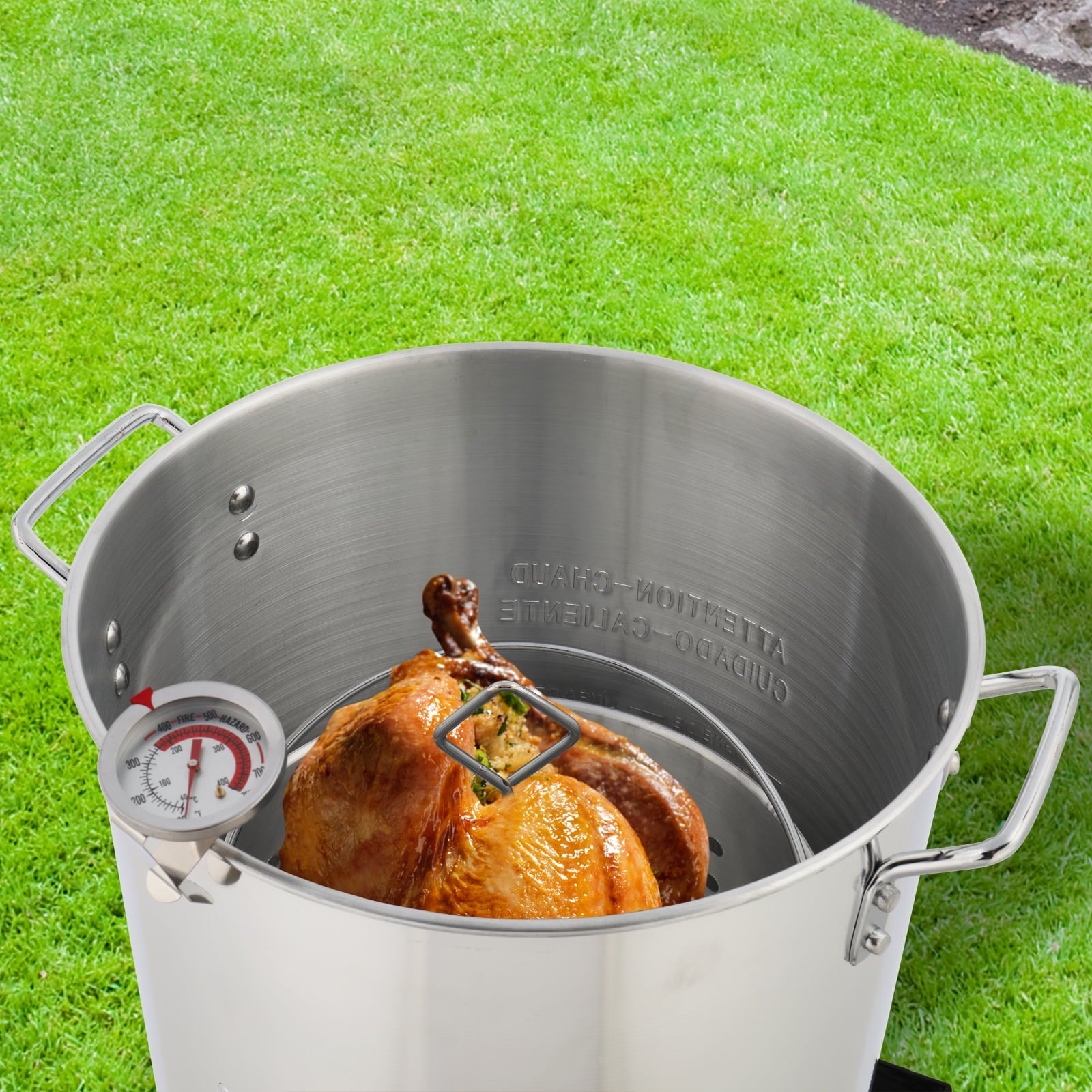 30QT Turkey Fryer and 10QT Fish fryer kit, aluminum outdoor fryer and seafood pot steamer with basket, thermometer, marinade syringe, Turkey rack and rack lifter
