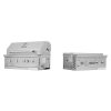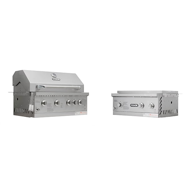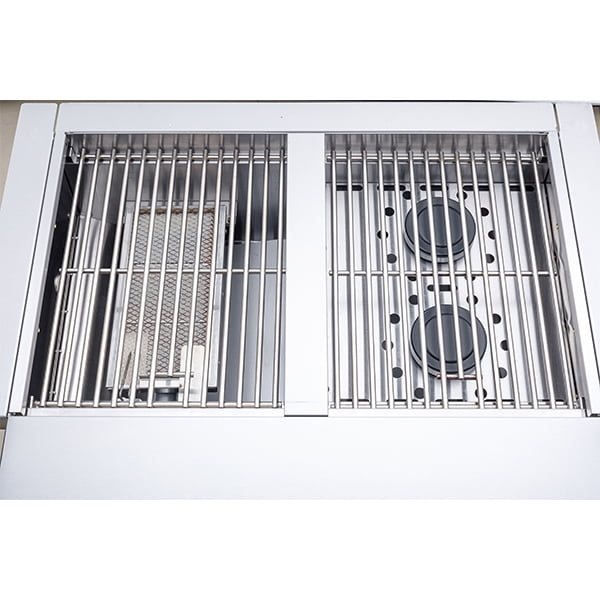 Grill up all your favorite foods with this stainless-steel drop-in gas grill and side burner bundle set! The 4-burner gas grill has 52,000 total BTUs, including a 12,000 BTU mesh rear burner. It features electric ignition and a temperature gauge. The side burner set has 49,000 total BTUs, including 13,000 BTUs of infrared burner and two 18,000 BTUs side burner. This drop-in gas grill bundle set is convertible natural gas!