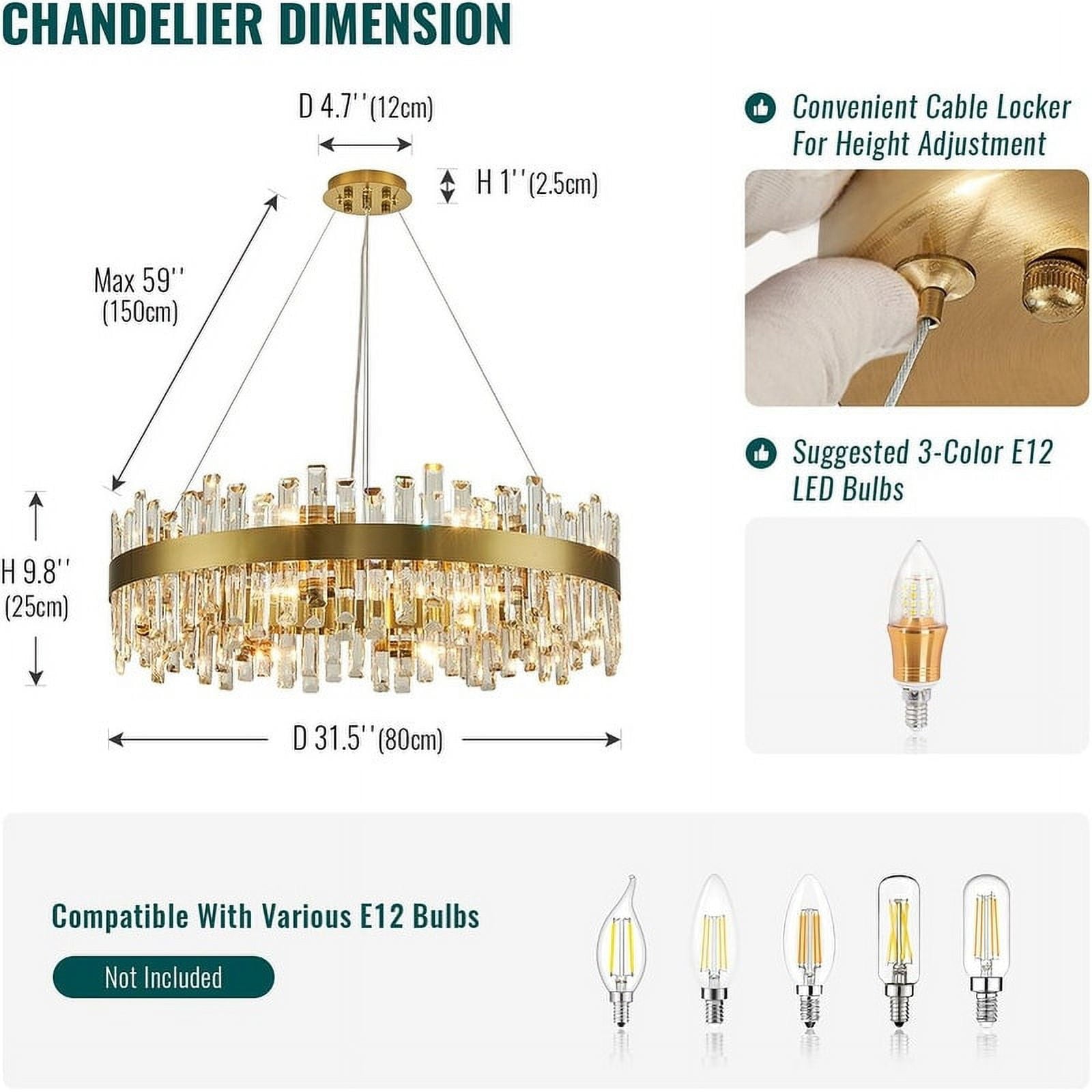 - Optimized Lighting Effect: Adorned with an exquisite raindrop K9 clear crystal lampshade, the chandelier promises superior light refraction, cultivating a charming and mesmerizing lighting ambiance. Its versatile elegance makes it highly recommended for various spaces, including dining rooms, living rooms, kitchen islands, bars, and restaurants, enhancing these spaces with its captivating presence.