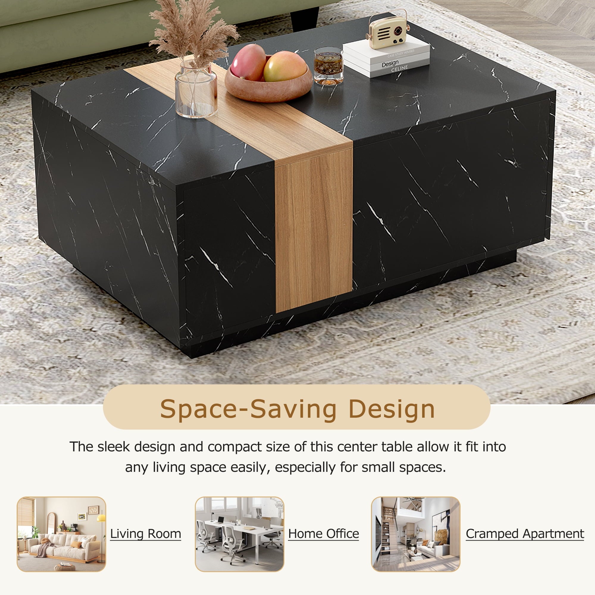 - 【Space-Saving Design】Featuring the size of 35.4’’*23.6’’*15.7’’, the sleek design and compact size of this center table allow it fit into any living space easily, especially for small spaces. Whether it’s a cozy living room, a cramped apartment, or a busy home office, it will be a perfect choice.