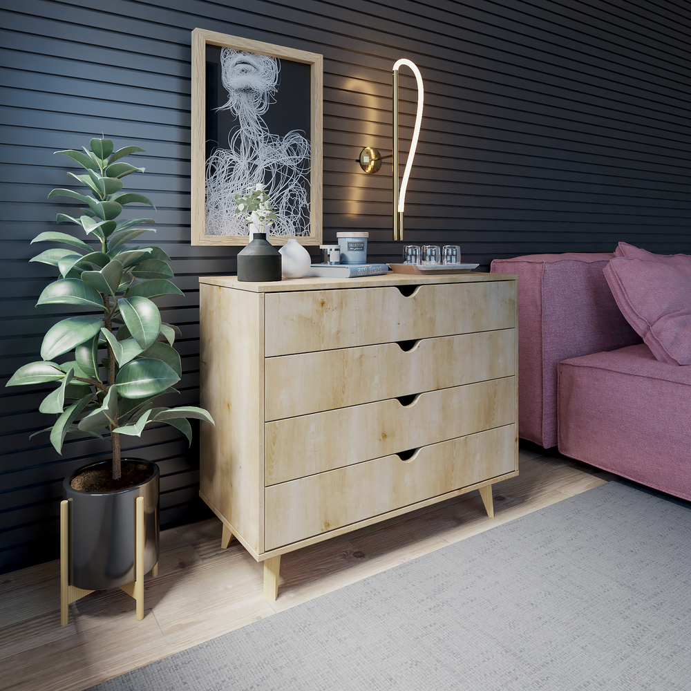 – SKU: ZX9OCNTR7404635 in. Solid Wood Four Drawer Standard Dresser, Black