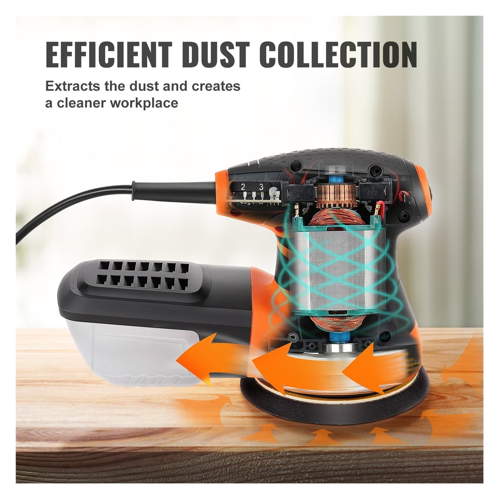 Dont be fooled by its compact size It packs a punch that can rival any random orbital sander out there. 230V 1.52 A motor provides power for high-efficient work.
