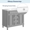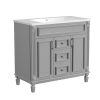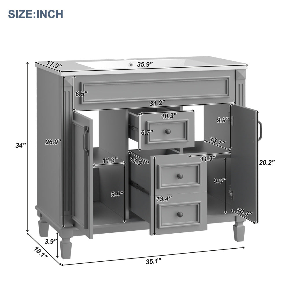 36'' Bathroom Vanity Set, Undermount Bathroom Cabinet and Mirror Cabinet, Ceramic Sink Top, Storage Cabinet with 2 Soft Closing Doors and 2 Drawers, Vanity Cabinet Set, Suit for 4'' Faucet, Gray
