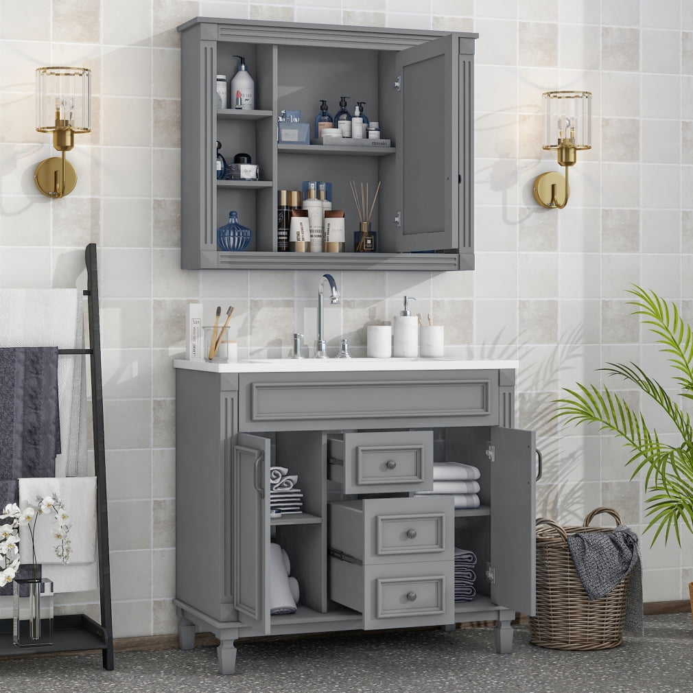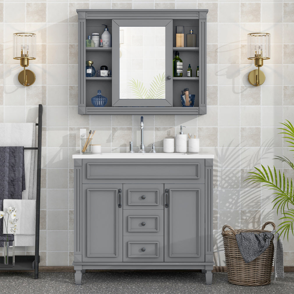 Home Bathroom Vanities 36” Bathroom Vanity Set, Undermount Bathroom Cabinet and Mirror Cabinet, Ceramic Sink Top, Storage Cabinet with 2 Soft Closing Doors and 2 Drawers, Vanity Cabinet Set, Suit for 4” Faucet, Gray