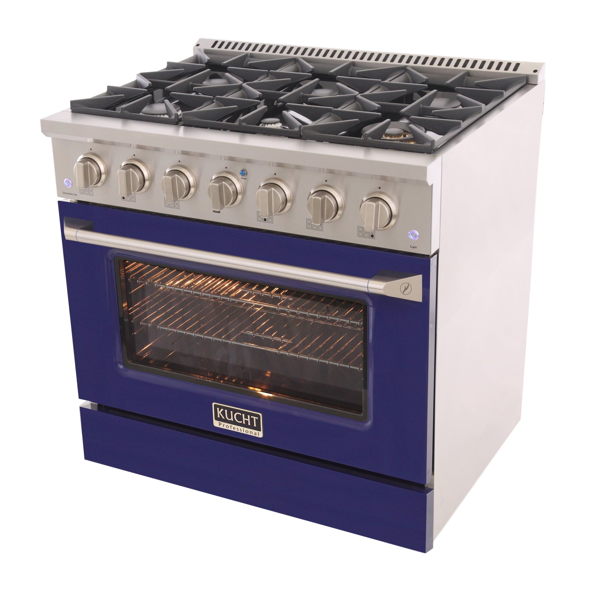 36” Pro Class Kitchen Dual Fuel Range The super powerful 20.000 BTU Rocket Power Burner is perfect for using a small to medium WOK or Cooking a Paella, but the main feature of this series is the ability to change the look of your kitchen in less than 2 minutes by changing the color of the oven door and the kickplate. You can get a new color set (oven door and kickplate) for a really low price and change it whenever you like. The currently available colors are Red, Blue, White, Green, Black, Light Blue, Olive Green, Cement Gray and Stainless Steel. Your kitchen decor will be ready in 2 minutes!