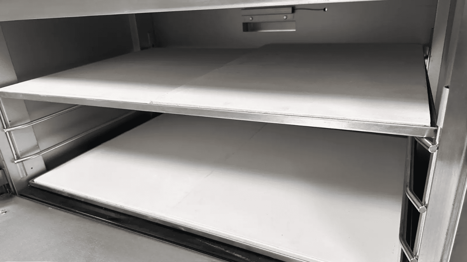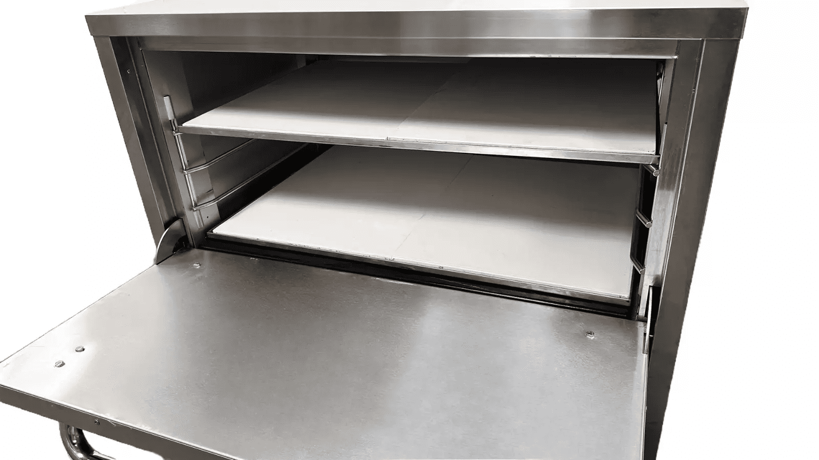 Thermostat control allows you to adjust the temperature from 120°F to 650°FGood insulation outside the chamber helps maintain optimal cooking temperatureThe hearth deck is perfect for baking delicious pizzasDouble-deck design with three positions and a 2 3/4″ distance in between for versatile cookingSpring door system for easy access to the cooking chambersStainless steel door interior and bottom plate for durabilityV-shaped baffle ensures the best heat distribution for consistent cooking3/4″ NPT rear gas connection for natural gas powerThe compact 36-inch size fits well in commercial kitchensNSF certification ensures this oven meets high safety and sanitation standards -