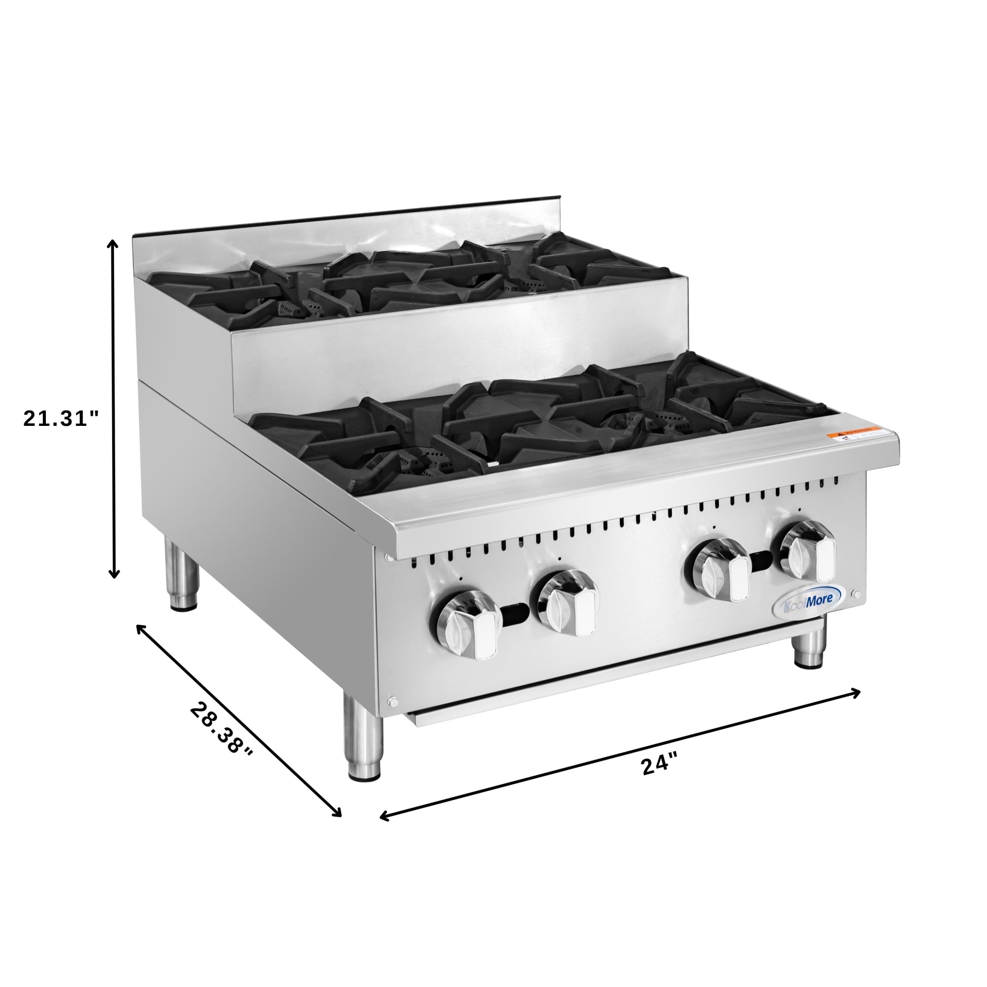 Countertop Step-up Design: Specifically designed for countertop use, the step-up configuration allows for easier access to the rear burners, optimizing workspace and workflow efficiency.