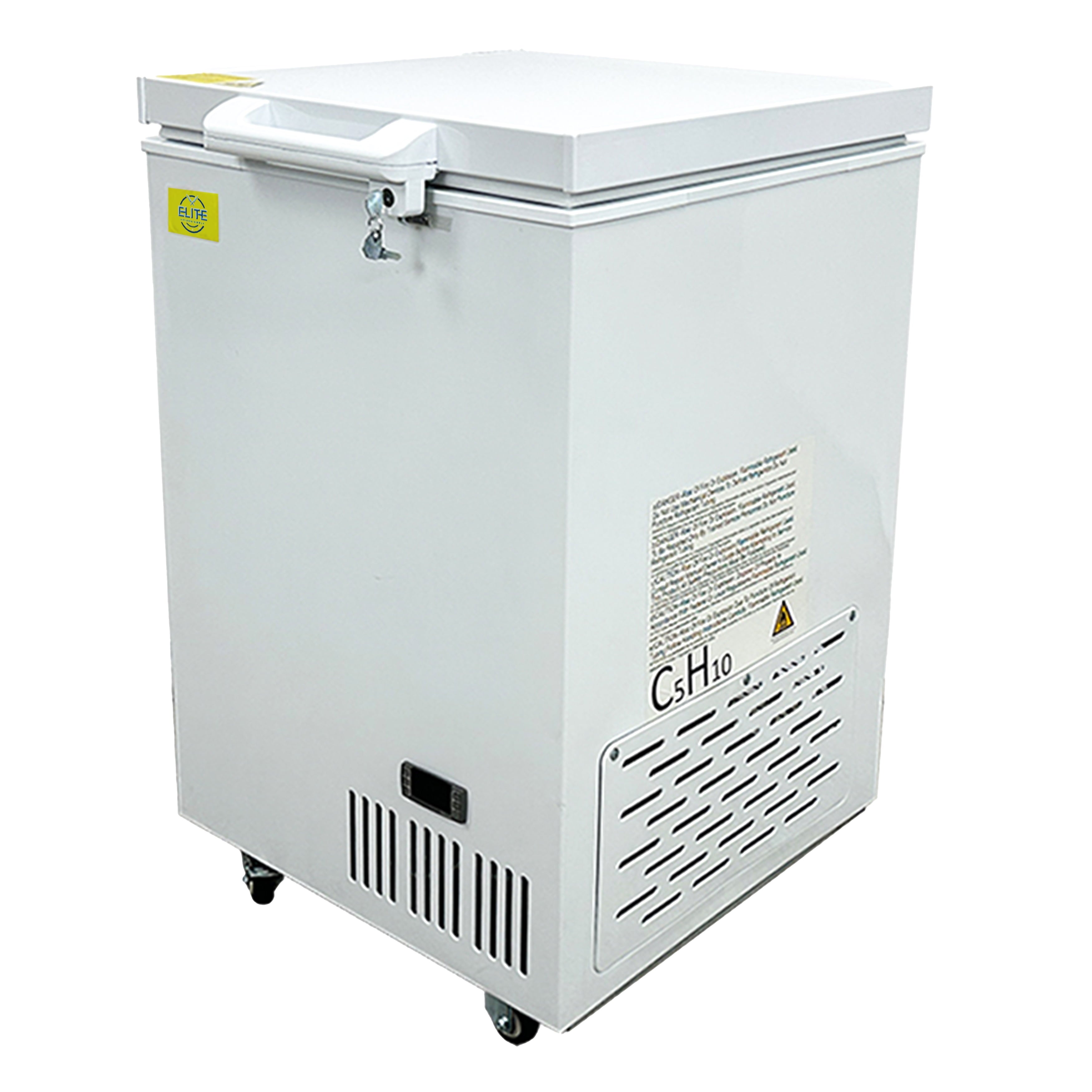 Introducing the 36 in. Laboratory Chest Freezer, a reliable and efficient solution for all your freezing needs. This NSF certified freezer boasts a spacious interior with dimensions of 21.5”Wx25.4”Dx35.5”H, providing ample storage space for your laboratory samples or personal items. With its ultra-low temperature capability of -122°F, you can trust that your contents will be kept at the optimal temperature for preservation. The white chest freezer is equipped with wheels for easy mobility, allowing you to effortlessly move it wherever it’s needed. Its convenient door open design ensures quick and easy access to your frozen goods.
