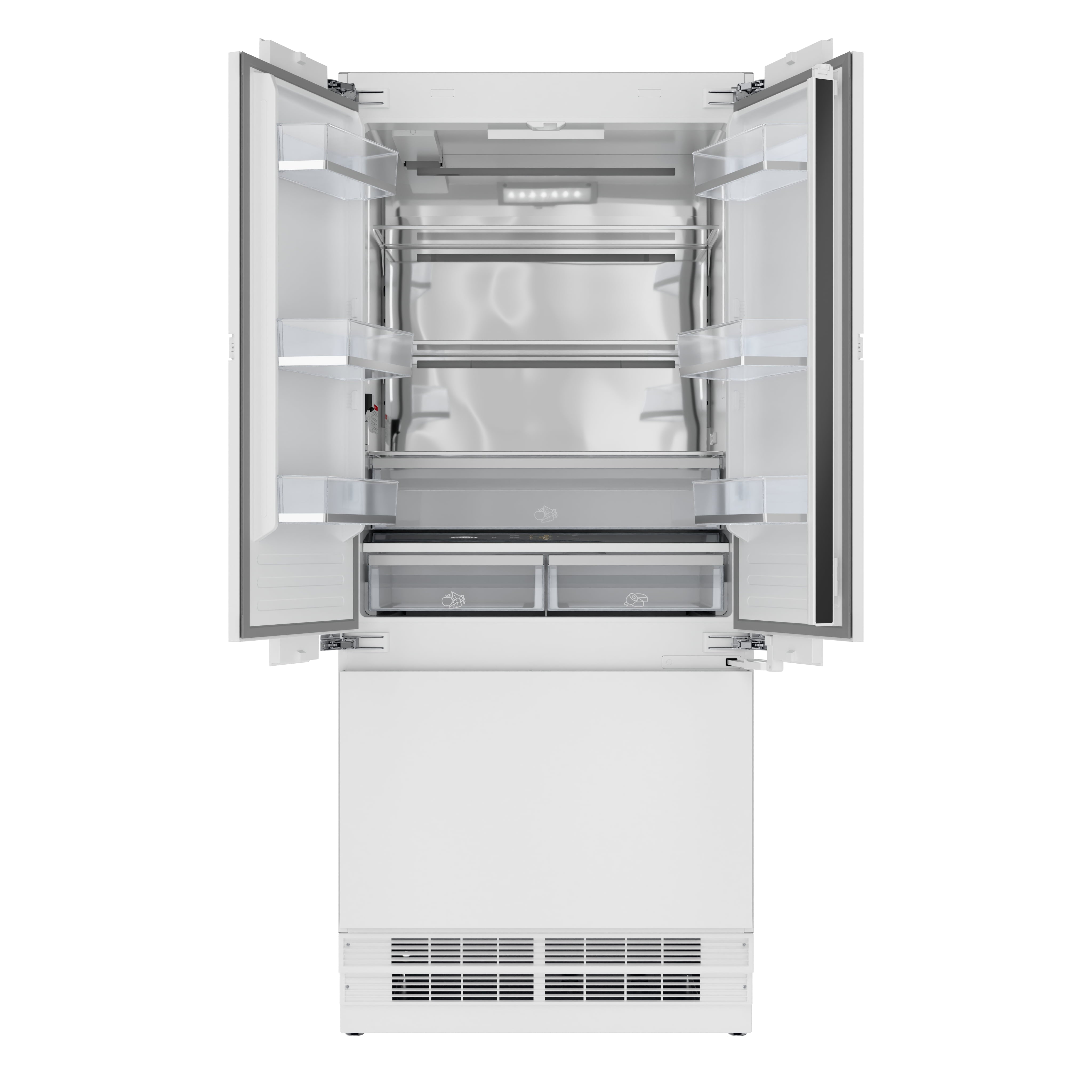 Elevate your kitchen with the KoolMore Reserve Collection 36-inch Panel Ready French Door Refrigerator, a premium appliance that combines luxury, style, and exceptional functionality.