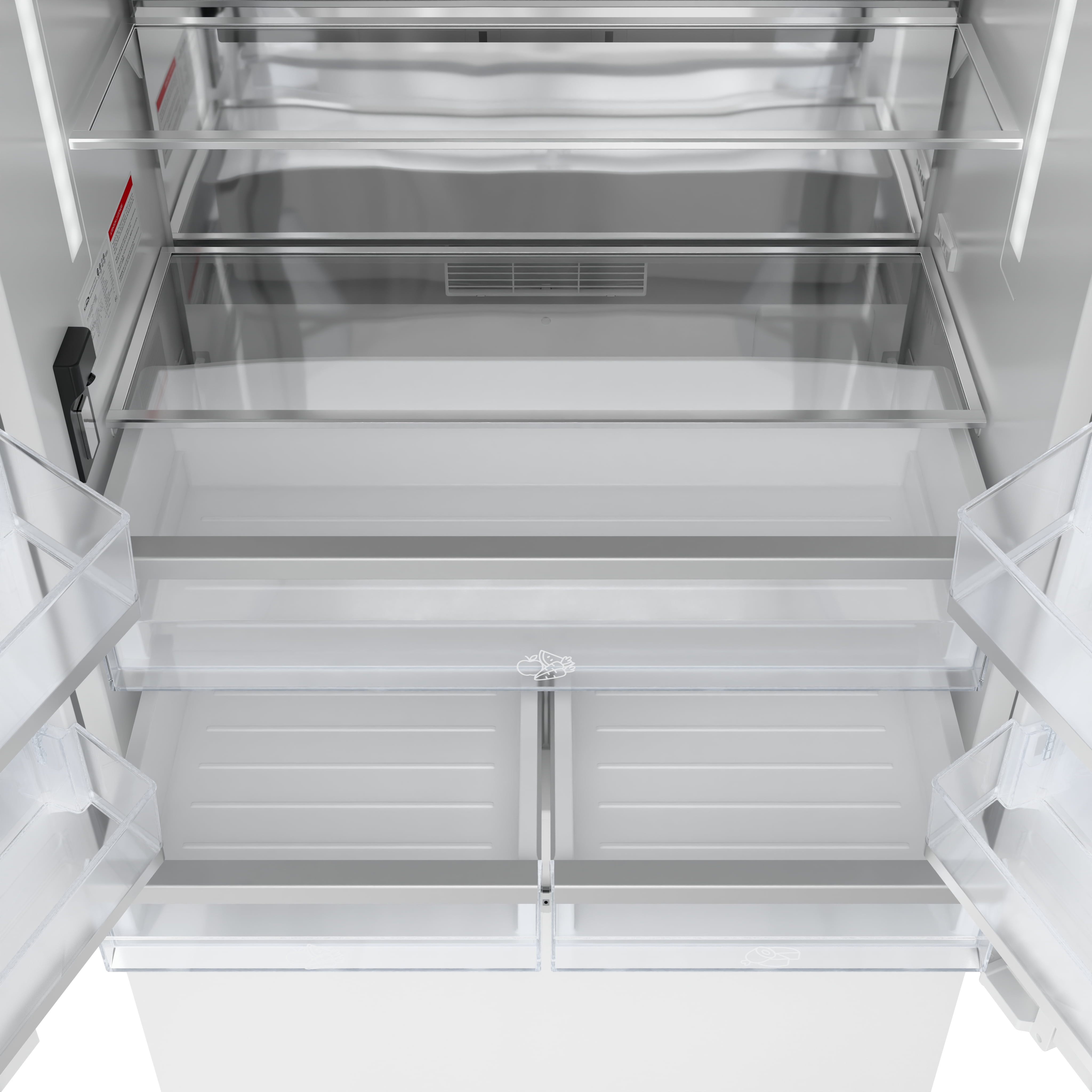 Bright LED lighting enhances visibility, while thoughtful features like Sabbath mode and a door-ajar alarm ensure convenience and food preservation.