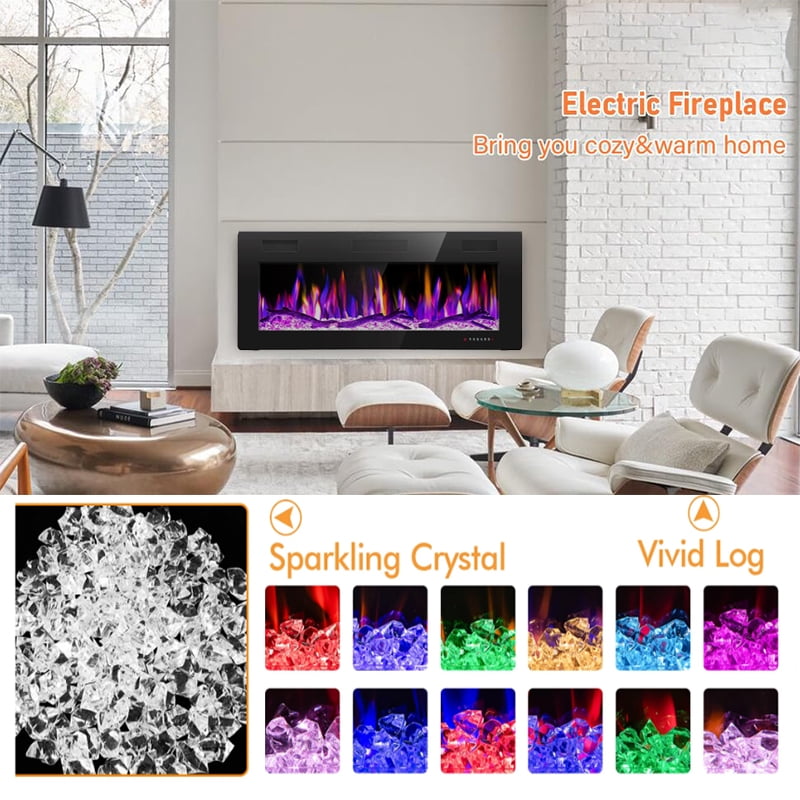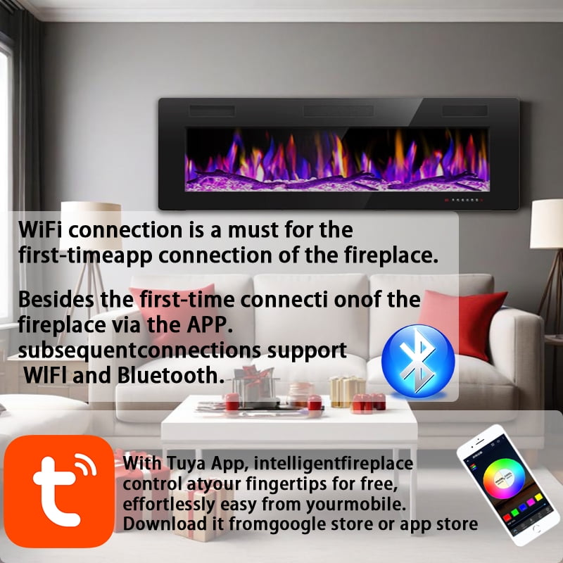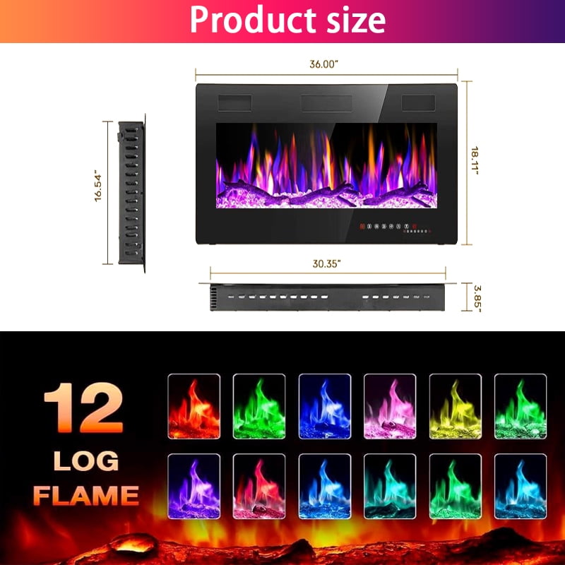 “Silent Splendor: The Future of Electric Fireplaces” Experience the perfect harmony of innovation and serenity with our ultra-stylish electric fireplace heaters. Bring 144 carefully curated flame styles to life, blending 12 crystal-gloss flames with 12 log-flame realism – all adjustable with 5 speed and brightness settings. Install this inset wall-mounted electric fireplace individually (as an eye-catching stand-alone or seamlessly built-in) in less than 15 minutes, then personalize every detail with the remote or responsive touch panel. Choose pure ambiance (no heat flames) or efficient 400-square-foot thermostatic heating, all powered by near-silent <30dB engineering. It's warmth reimagined - sophisticated, smart and serene.
