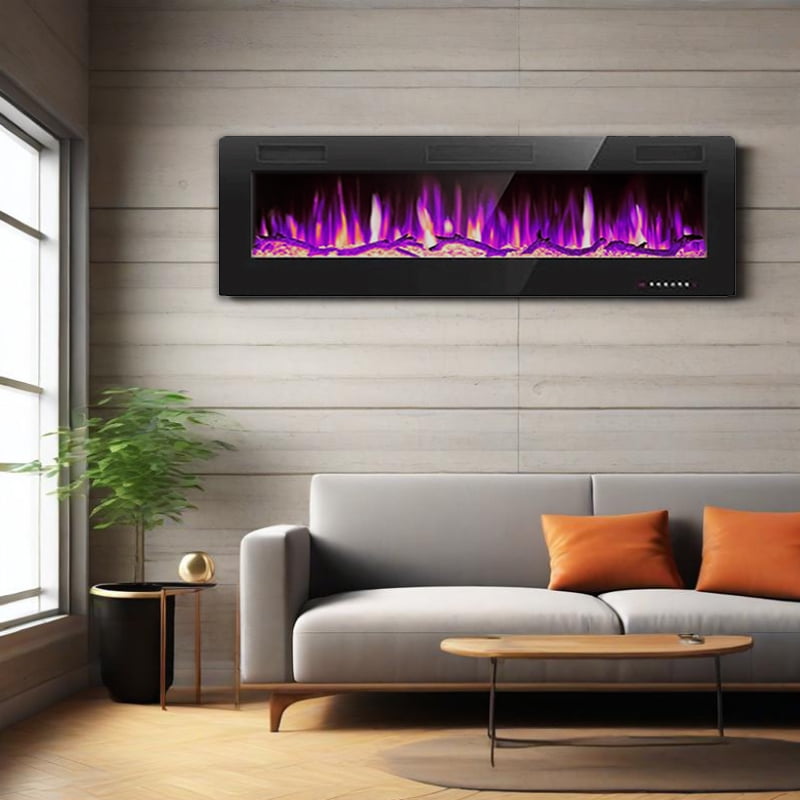 - Two mounting options: electric fireplaces can be mounted directly on the wall or recessed into a wall or frame for a seamless visual effect.