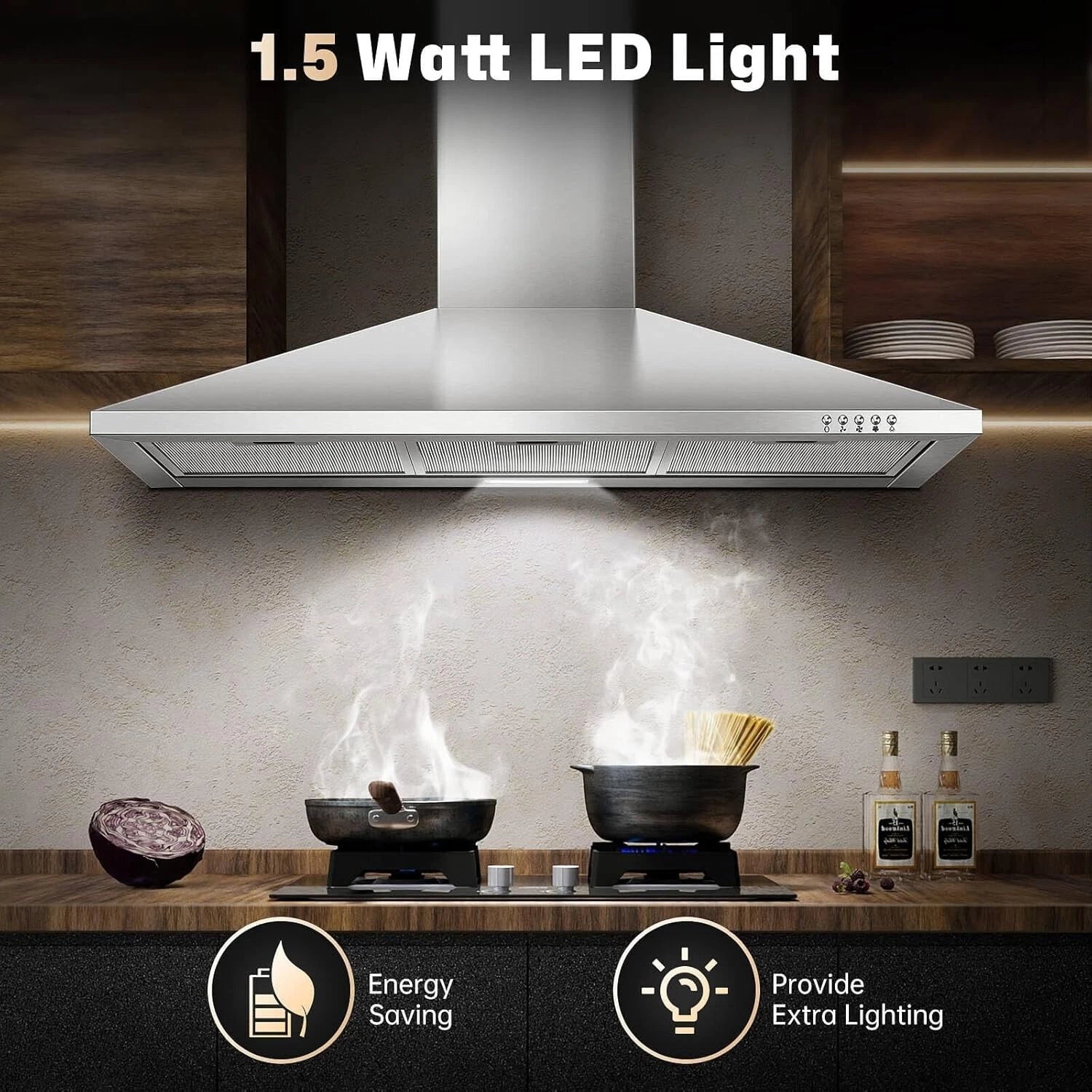 36 Inch Range Hood 450CFM Wall Mount Stainless Steel Kitchen Vent Hood Fan 3 Speed LED Light Chimney Hood Retractable