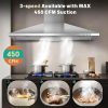 Wall Mount Range Hood 430 grade stainless steel / matteblack painted body Max 450 air volume / 3 speed exhaust settings Modern design and meet your daily cooking request