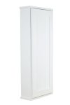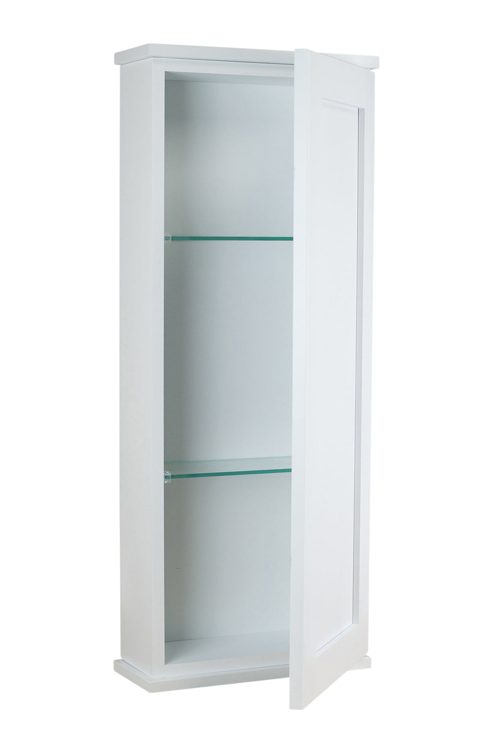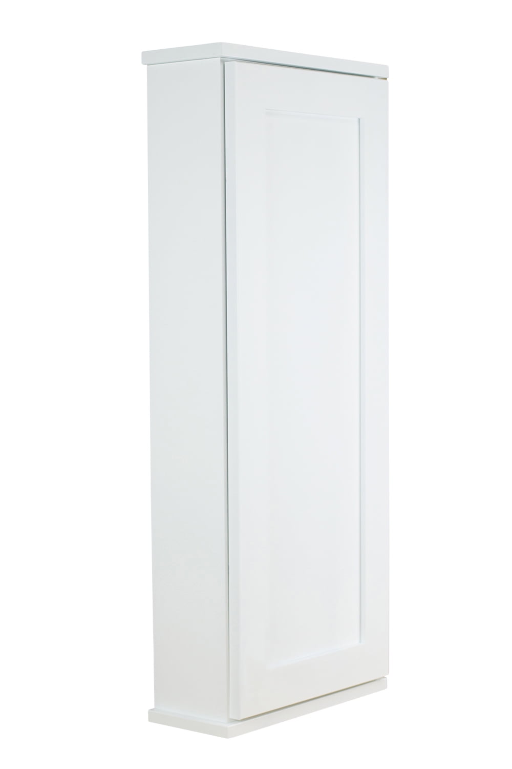 Mounts on the wall with steel mounting brackets inside for an easy installation. With two mounting methods, there is no need to worry about where the studs are in the wall. Four fully adjustable glass shelves slide into our patented shelf supports so they don’t tip or rock. Shaker style panel door sits on concealed hinges with soft close feature, door is reversible so you can mount it to open either direction. Perfect as a medicine cabinet, spice cabinet, or storage cabinet anywhere. OVERALL Measurements are 37.5h x 15.25w x 3.25″d OVERALL. You’ll have nearly 2.5″ of depth INSIDE the cabinet. White enamel finish. Solid pine cabinet box with solid maple door. Proudly made in Sarasota, FL.
