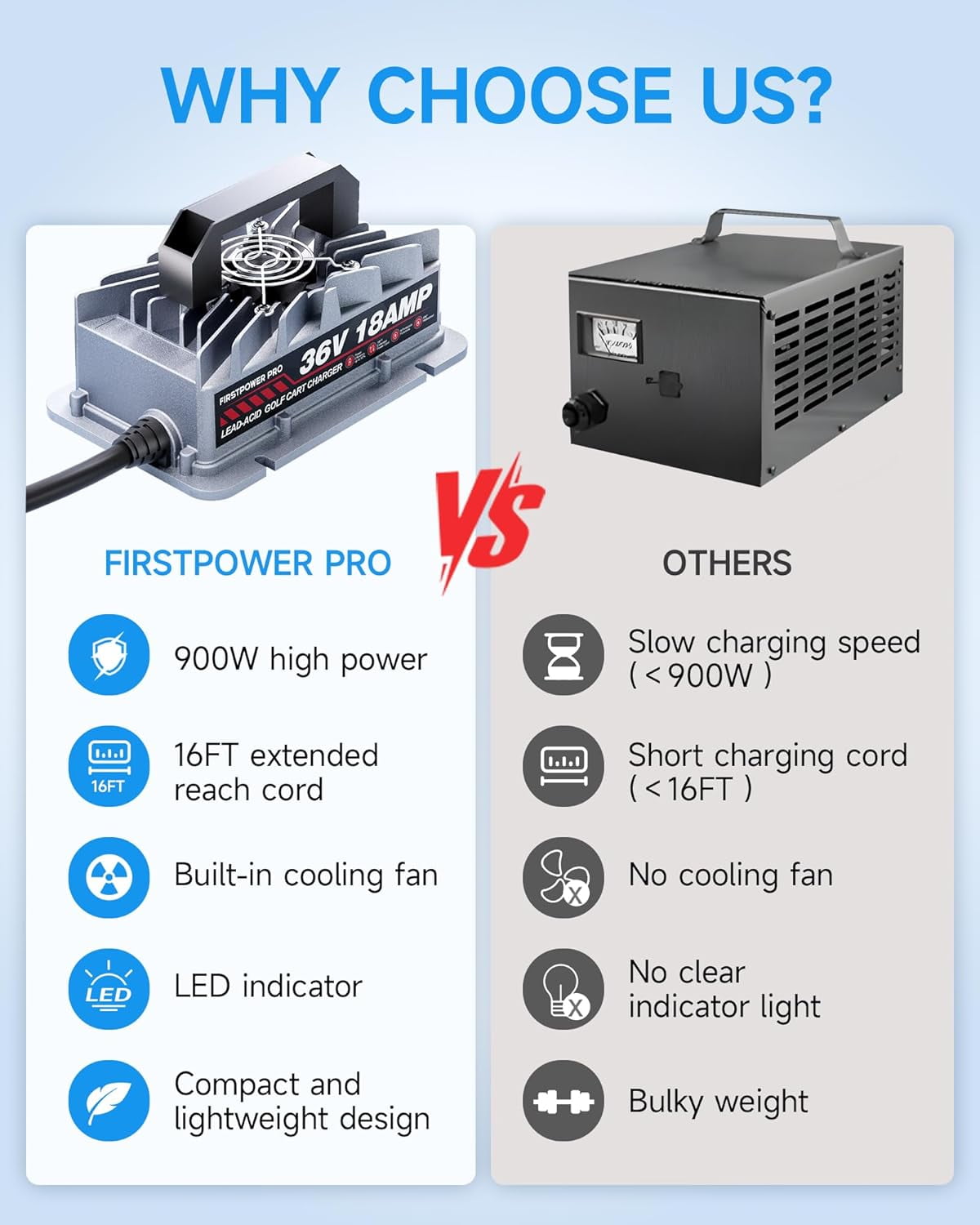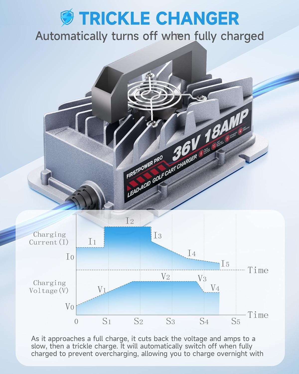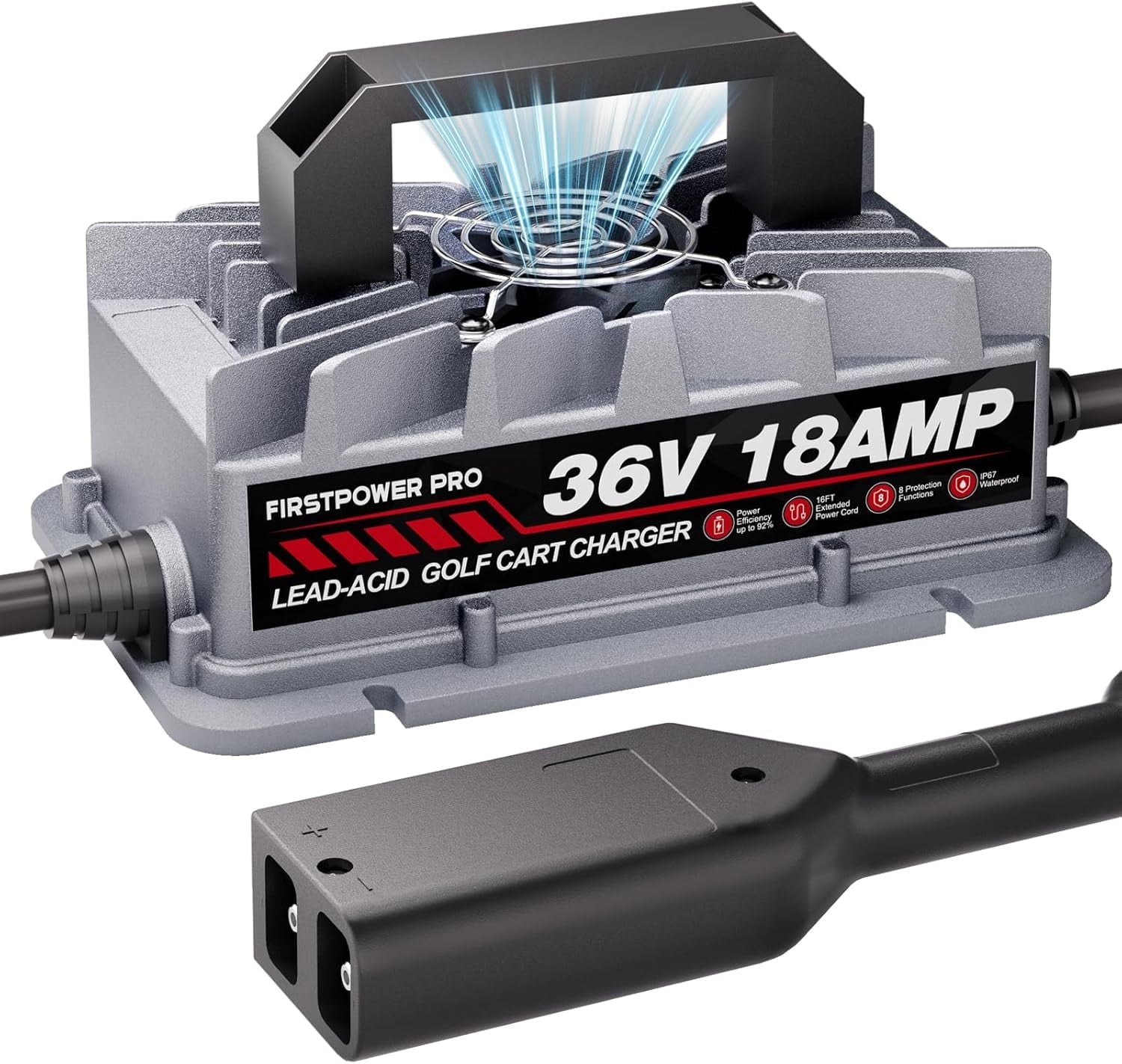 - Efficient & Lightweight: Firstpower PRO charger is designed for EZGO TXT electric golf carts and features a direct-connected with 2-pin D Style Plug for fast and secure charging.