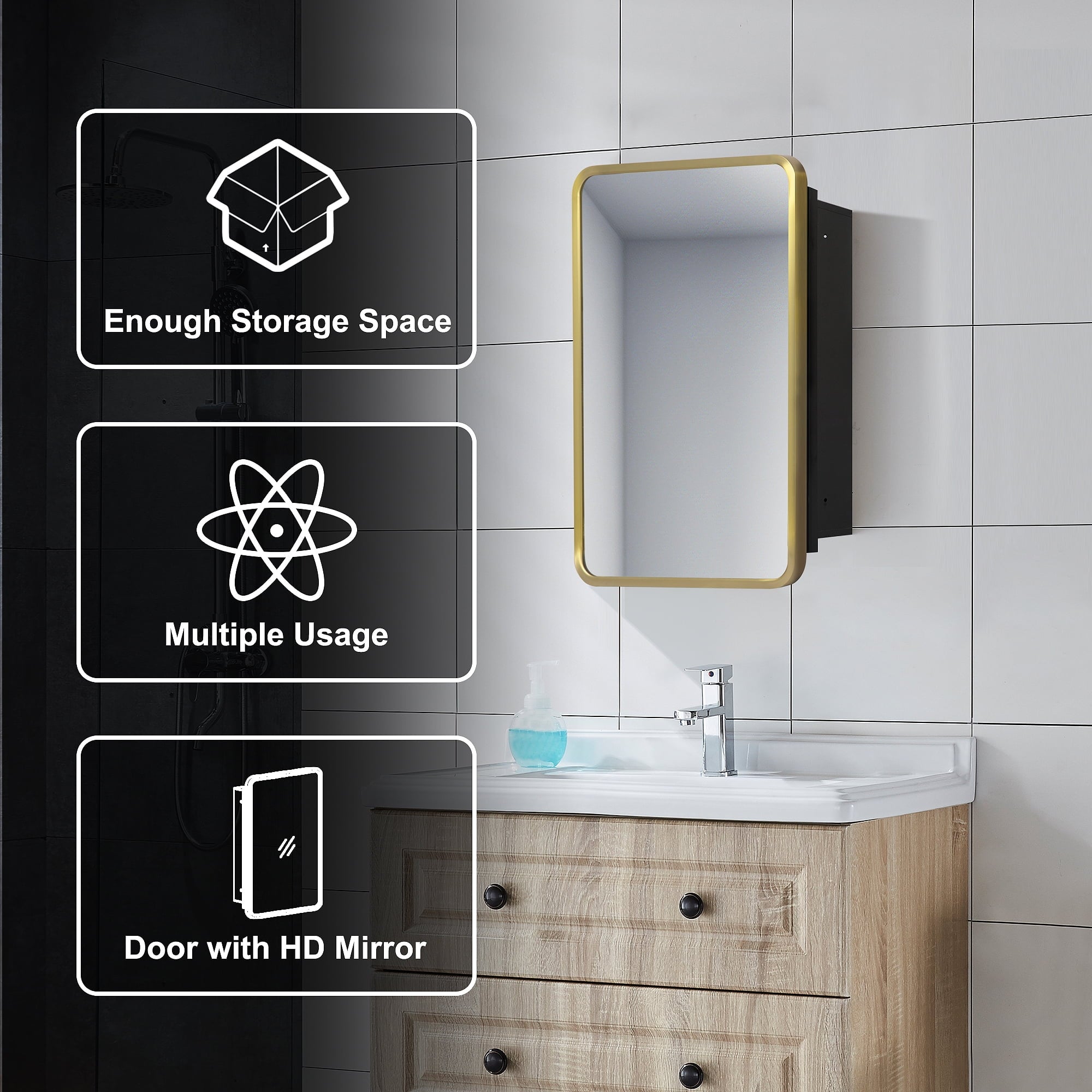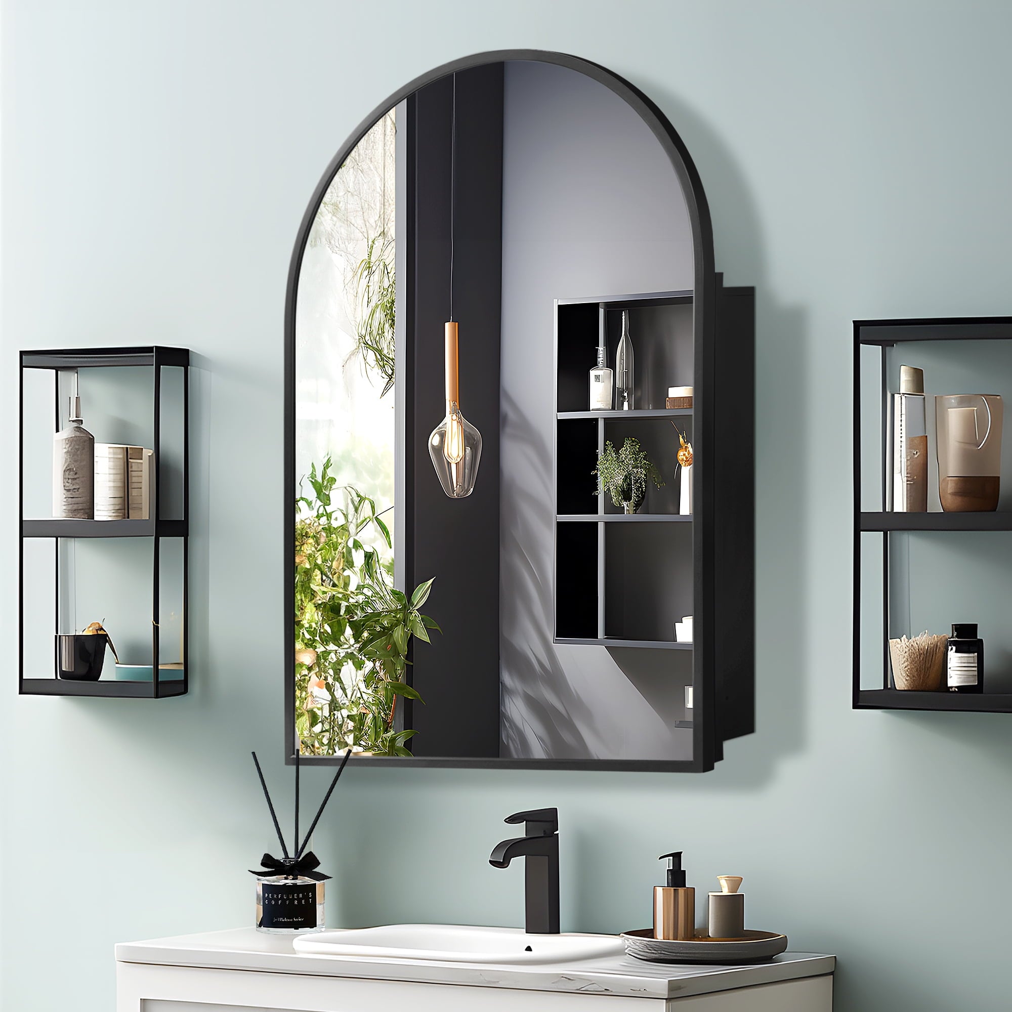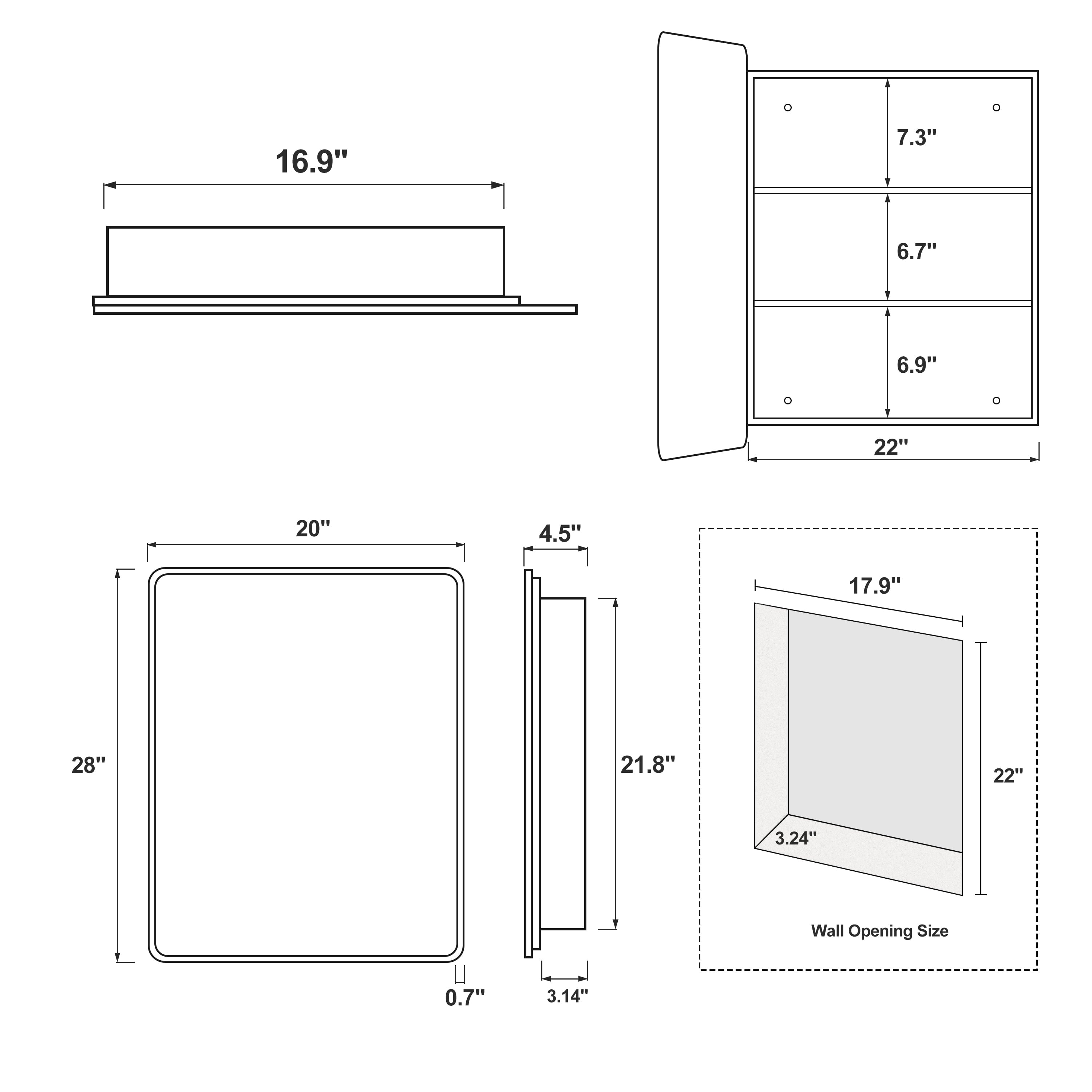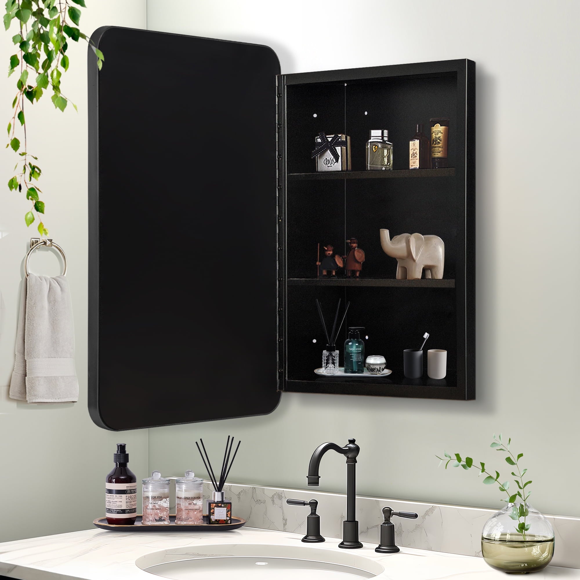 This Medicine Cabinet with Mirror is a great choice for your bathroom or entry. Made of high-quality metal material and shatterproof glass, the medicine cabinet with mirror is durable and safe for use. The medicine cabinet with mirror can be installed in or on the wall and it is special than other medicine cabinets. You can recess or surface-mount the medicine cabinet according to your needs and favor. The 2-shelves in the cabinet are removable, you can choose to put them on or remove them according to the item size in it. You can get more convenience and brightness with this medicine cabinet with mirror.