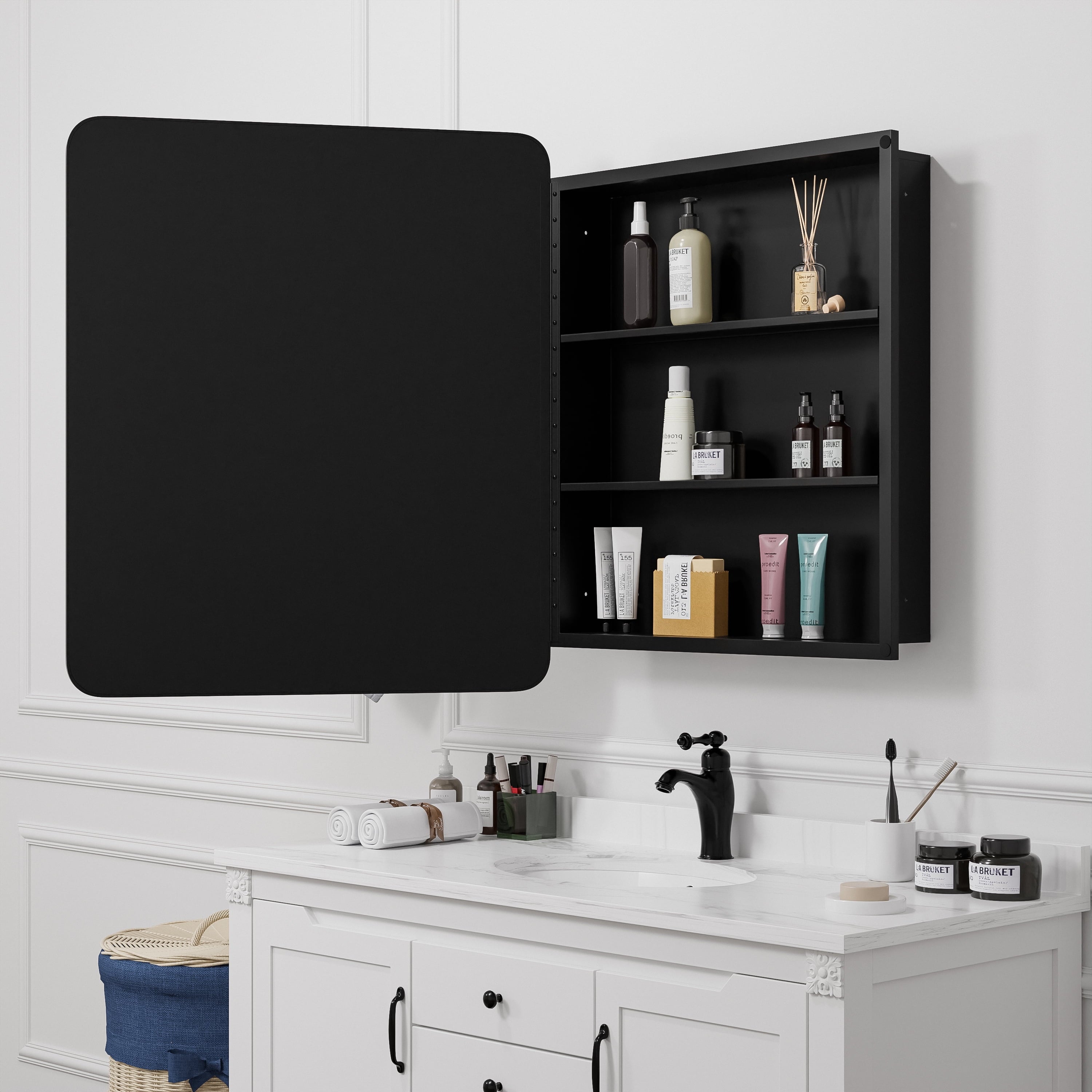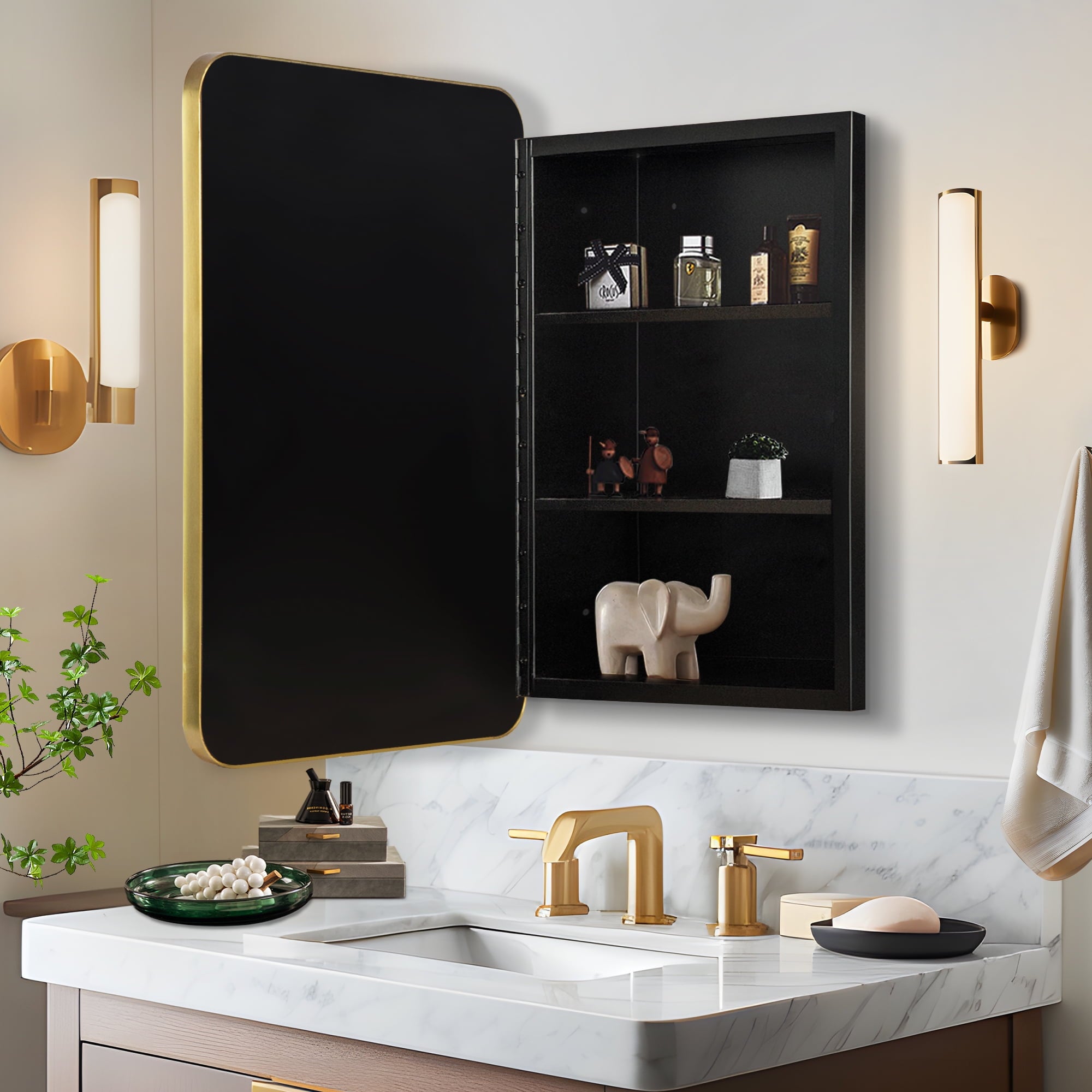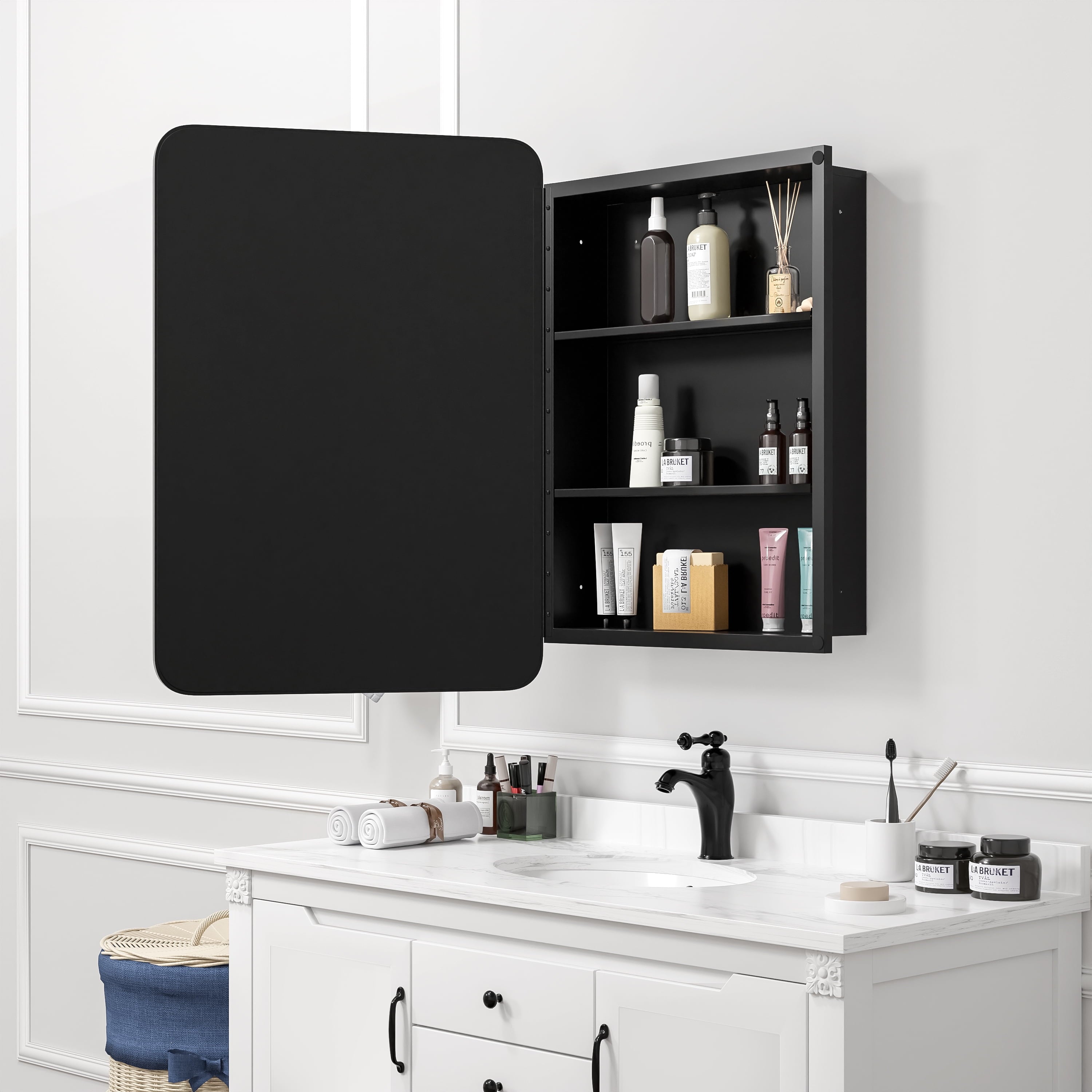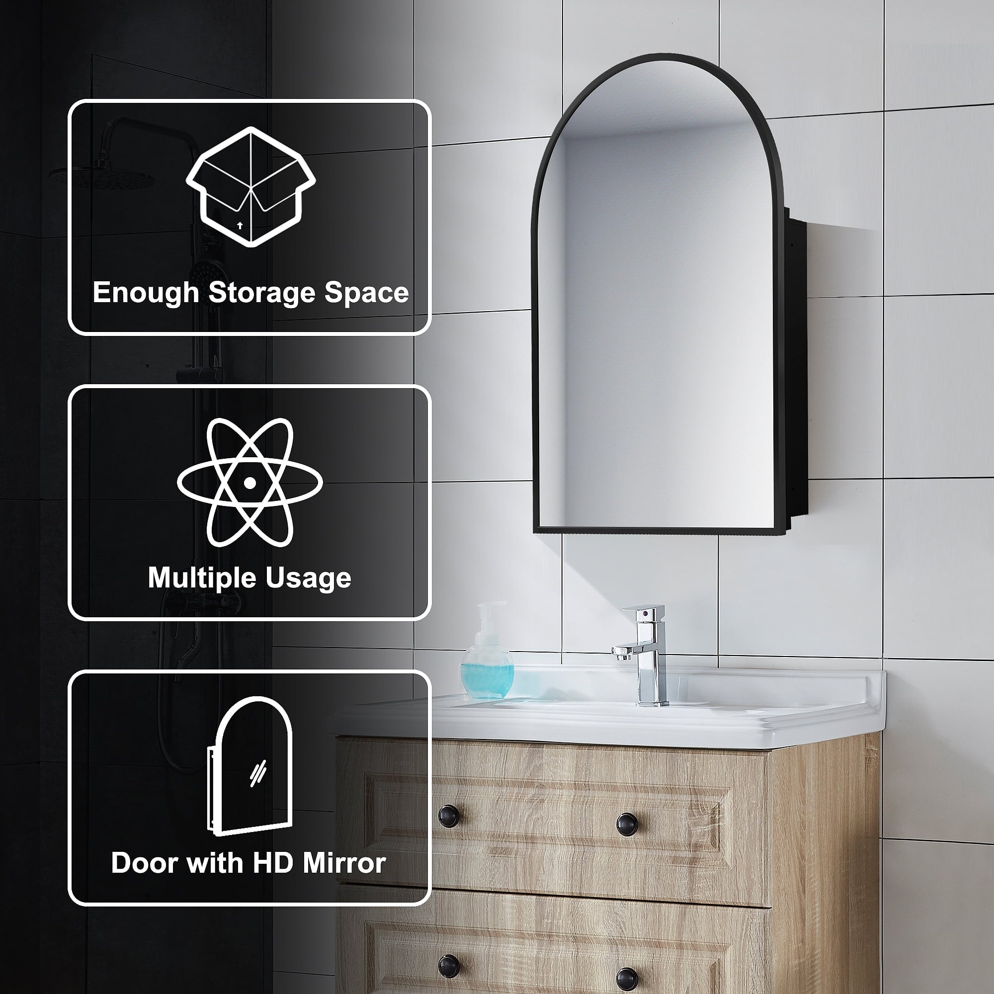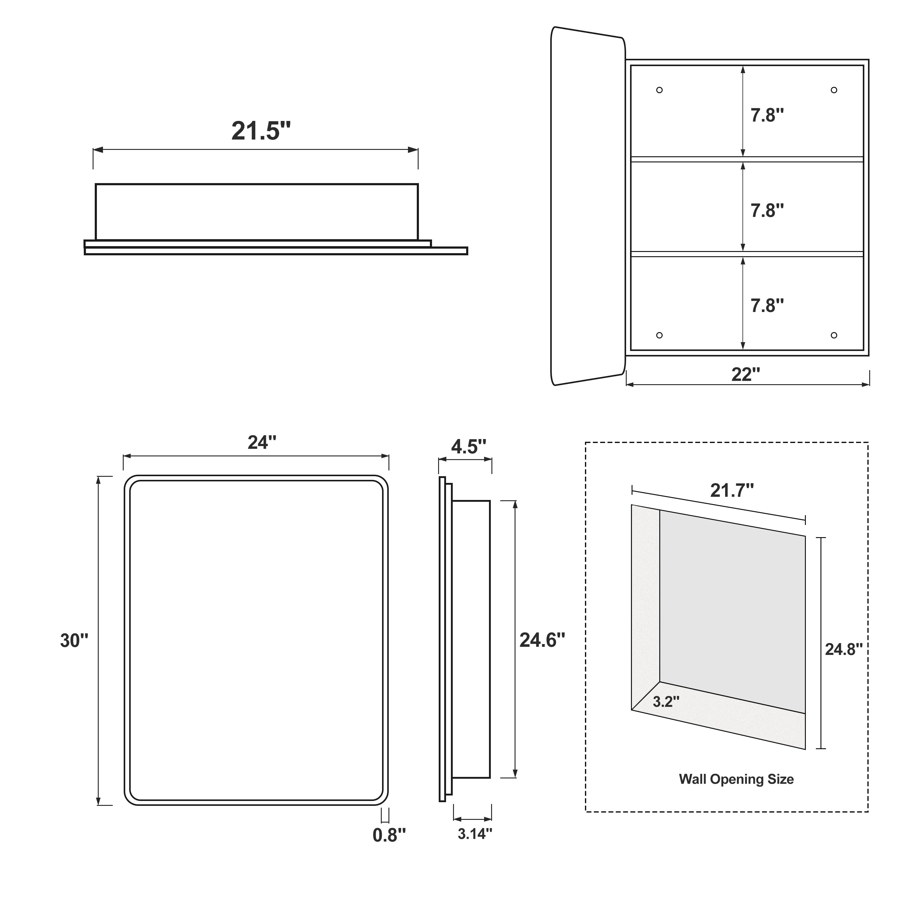 This Medicine Cabinet with Mirror is a great choice for your bathroom or entry. Made of high-quality metal material and shatterproof glass, the medicine cabinet with mirror is durable and safe for use. The medicine cabinet with mirror can be installed in or on the wall and it is special than other medicine cabinets. You can recess or surface-mount the medicine cabinet according to your needs and favor. The 2-shelves in the cabinet are removable, you can choose to put them on or remove them according to the item size in it. You can get more convenience and brightness with this medicine cabinet with mirror.