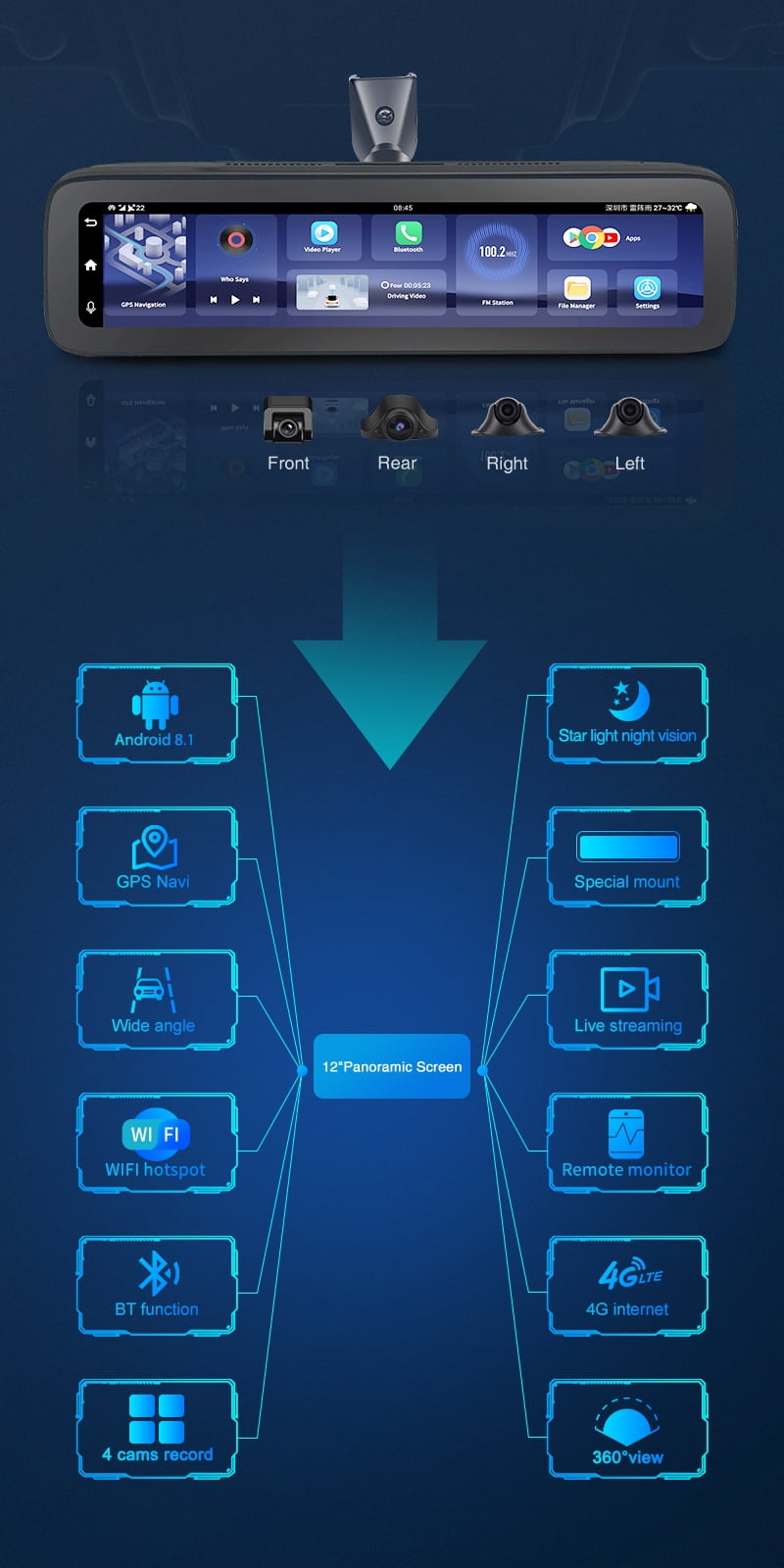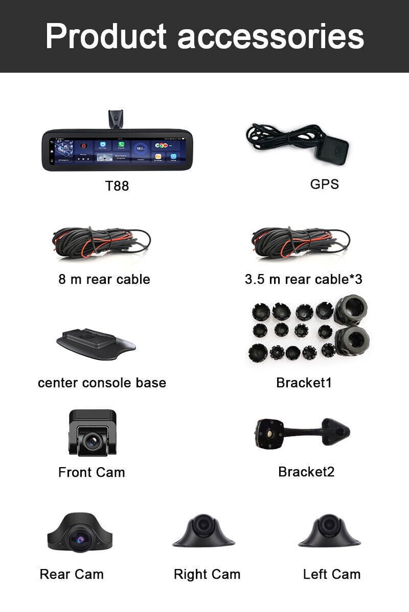 T88’s 4 cams can record at the same time from the front, rear and right, left side of the vehicle.