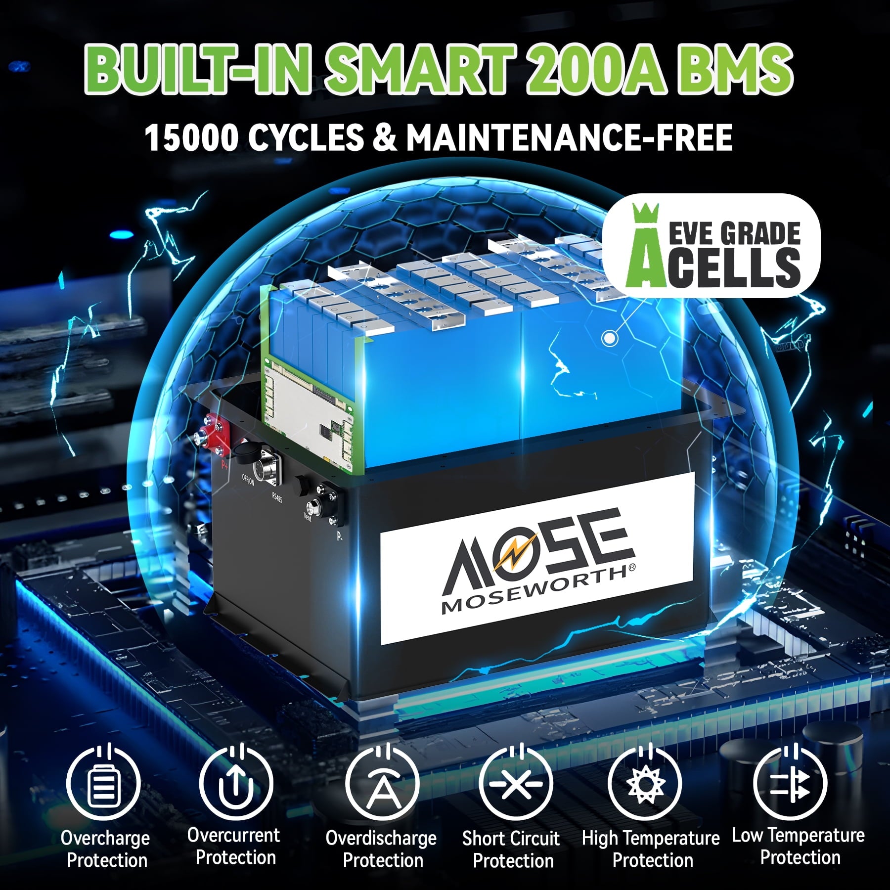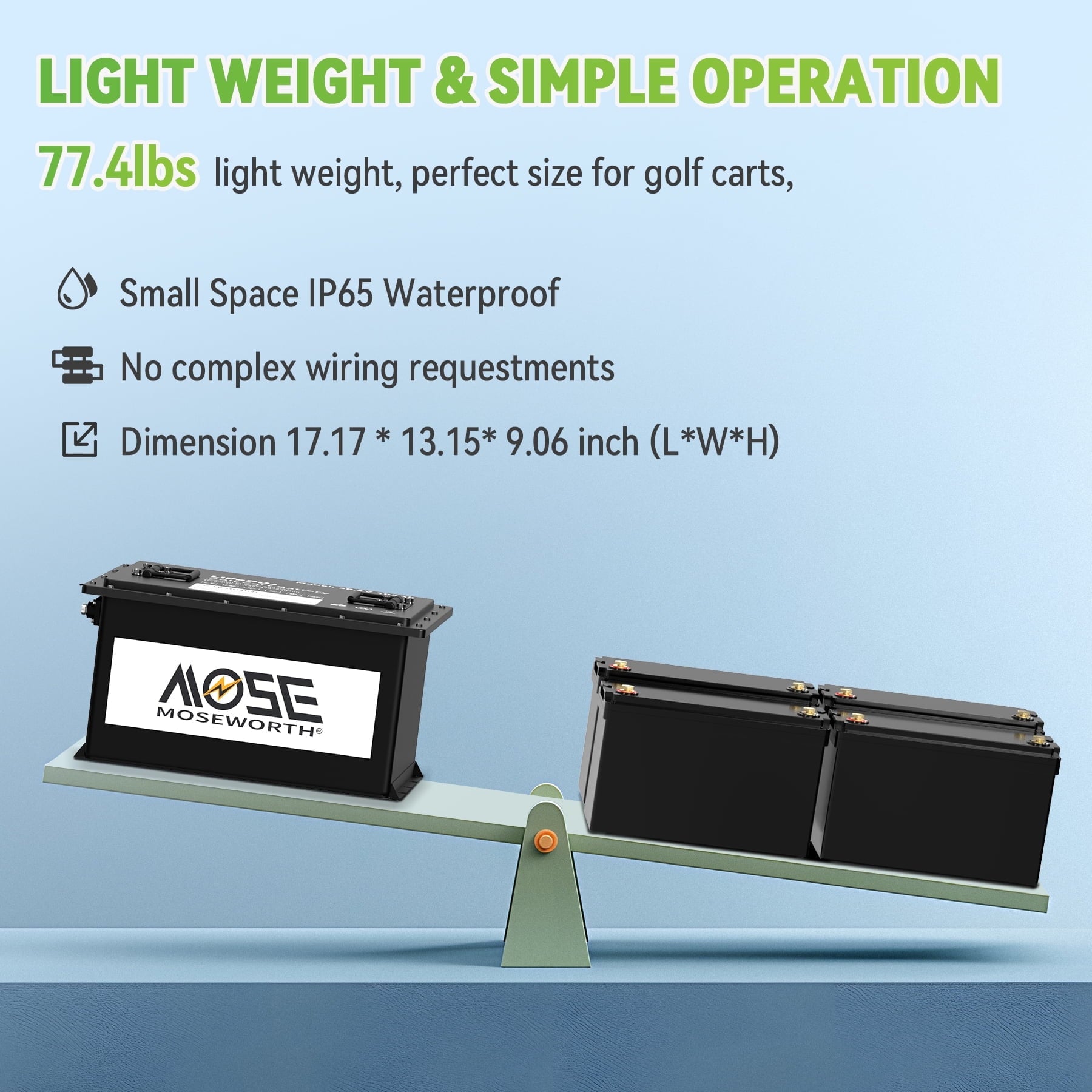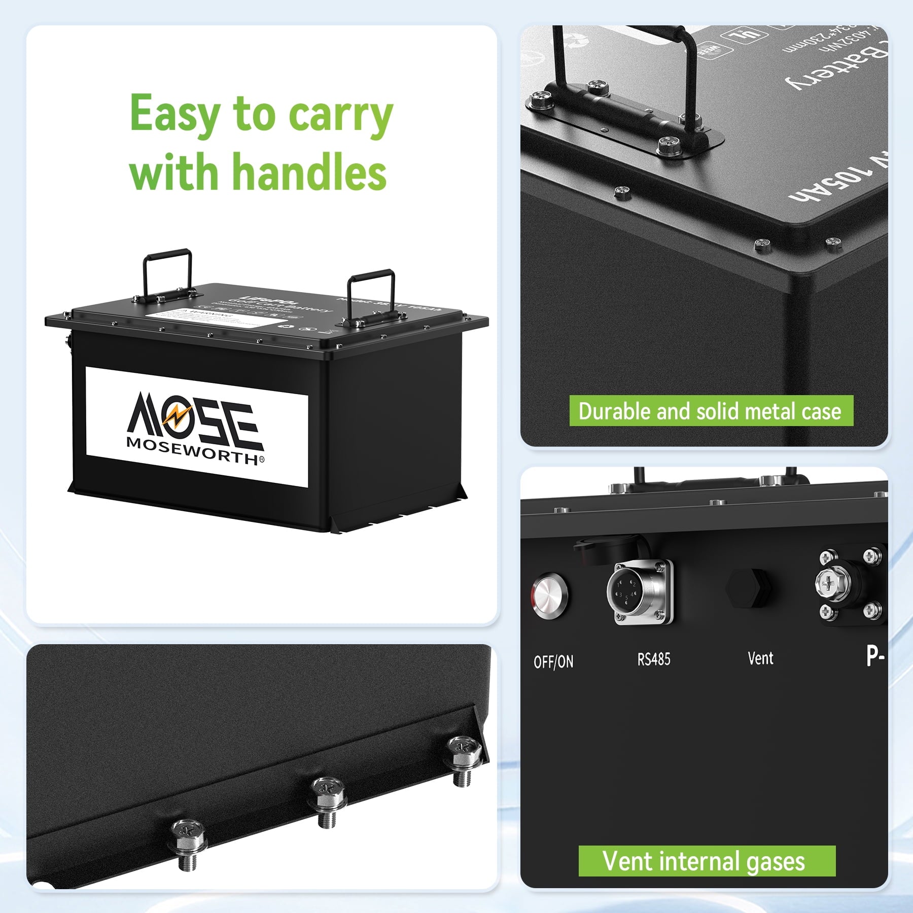MOSEWORTH have our own factory, have been specialized in developing sustainable and green energy products,that is the superior LiFePO4 batteries.Our batteries pollution-free,100% safe and non-toxic.