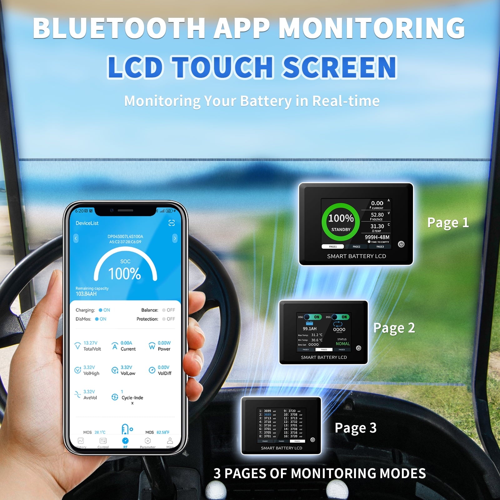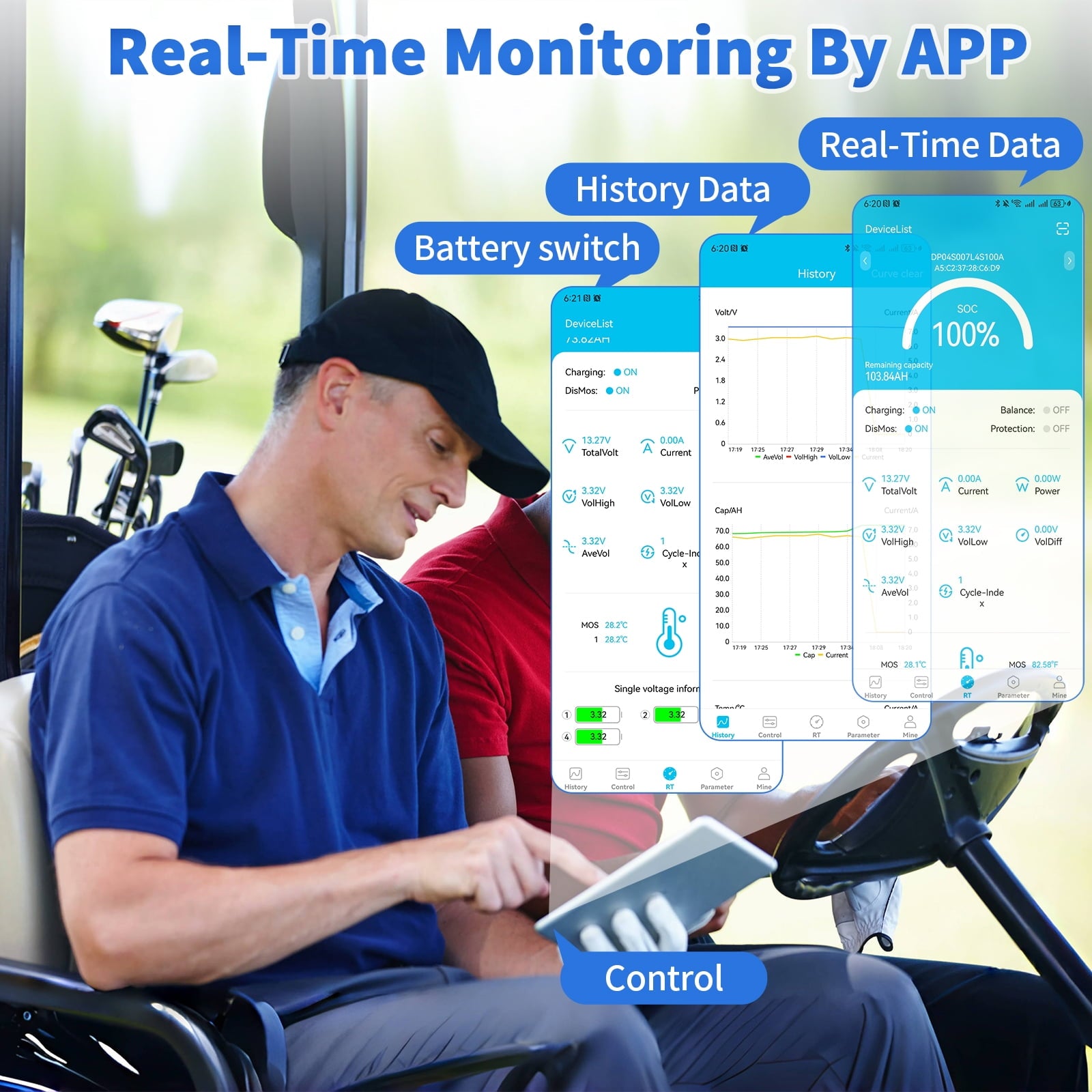 • With Mobile APP,bluetooth battery