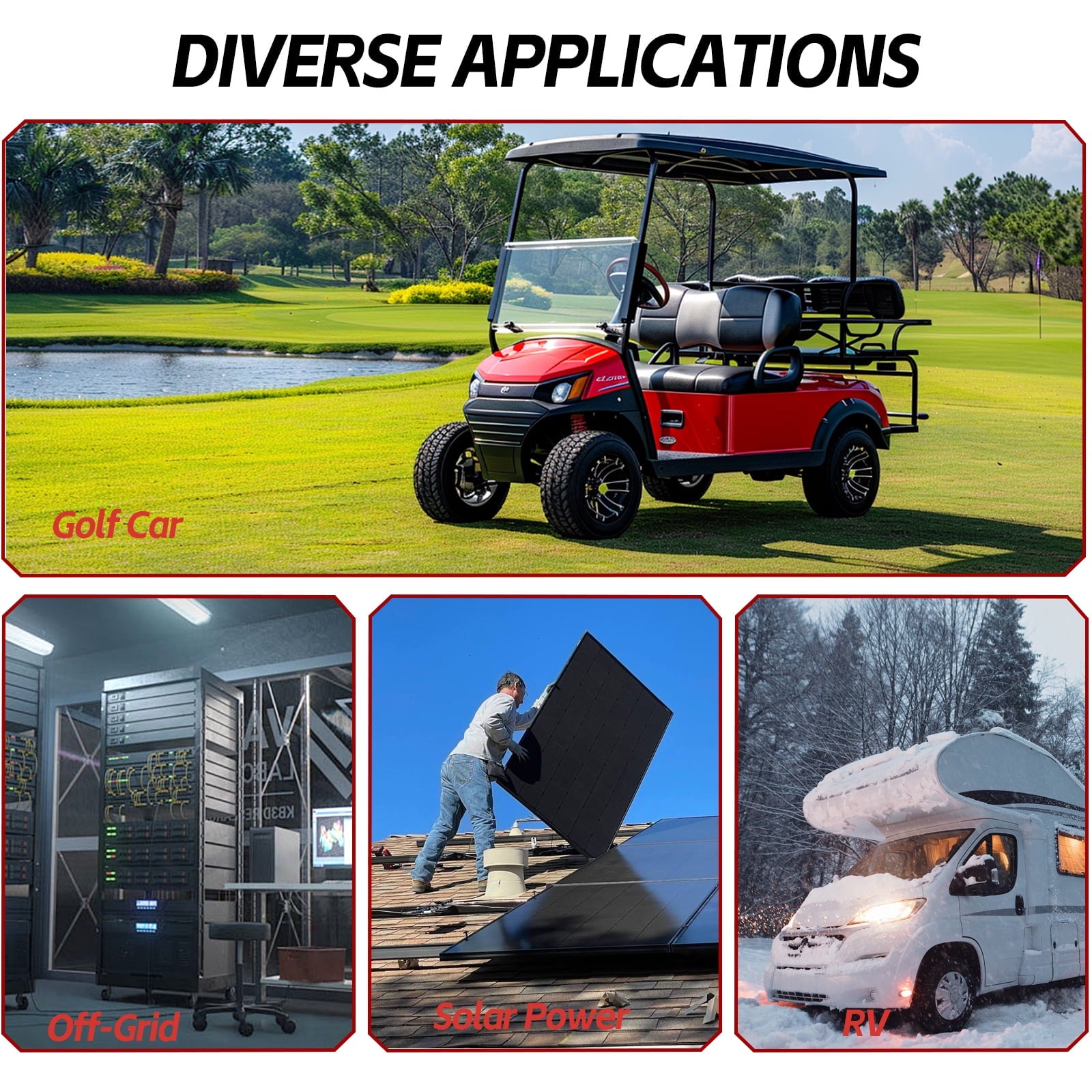 - 【Multiple applications & As Long As You Can Imagine】NewtiPower lithium iron phosphate battery can be used in the following areas: Home energy storage system, UPS backup, lighting, digital/CCTV cameras, portable TV, e-Robot, electric vehicles, DIY loud speaker, air pump, fish finder, golf car, trolling motor, motorhome/RV & camper, Houseboat, Travel Trailer, Dump Trailer and more. In a word, where you need electricity, you can use it!