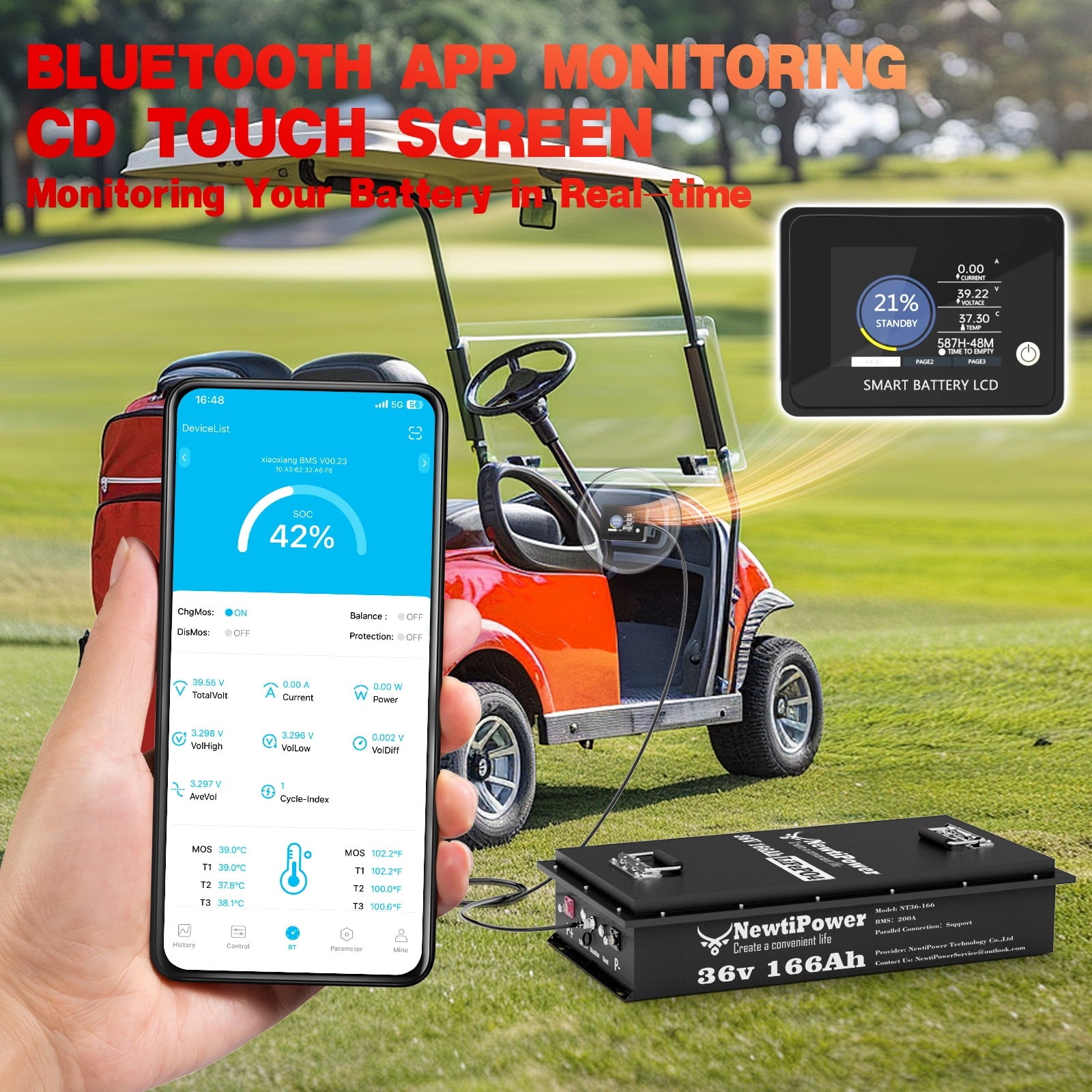 36V 166Ah LiFepo4 Lithium Battery with 200A Bluetooth BMS&APP, 10 Years-Lifetime, Perfect for Golf Cart, Boat, Trolling Motor, Lawn Mower, Solar, Off-Grid Life