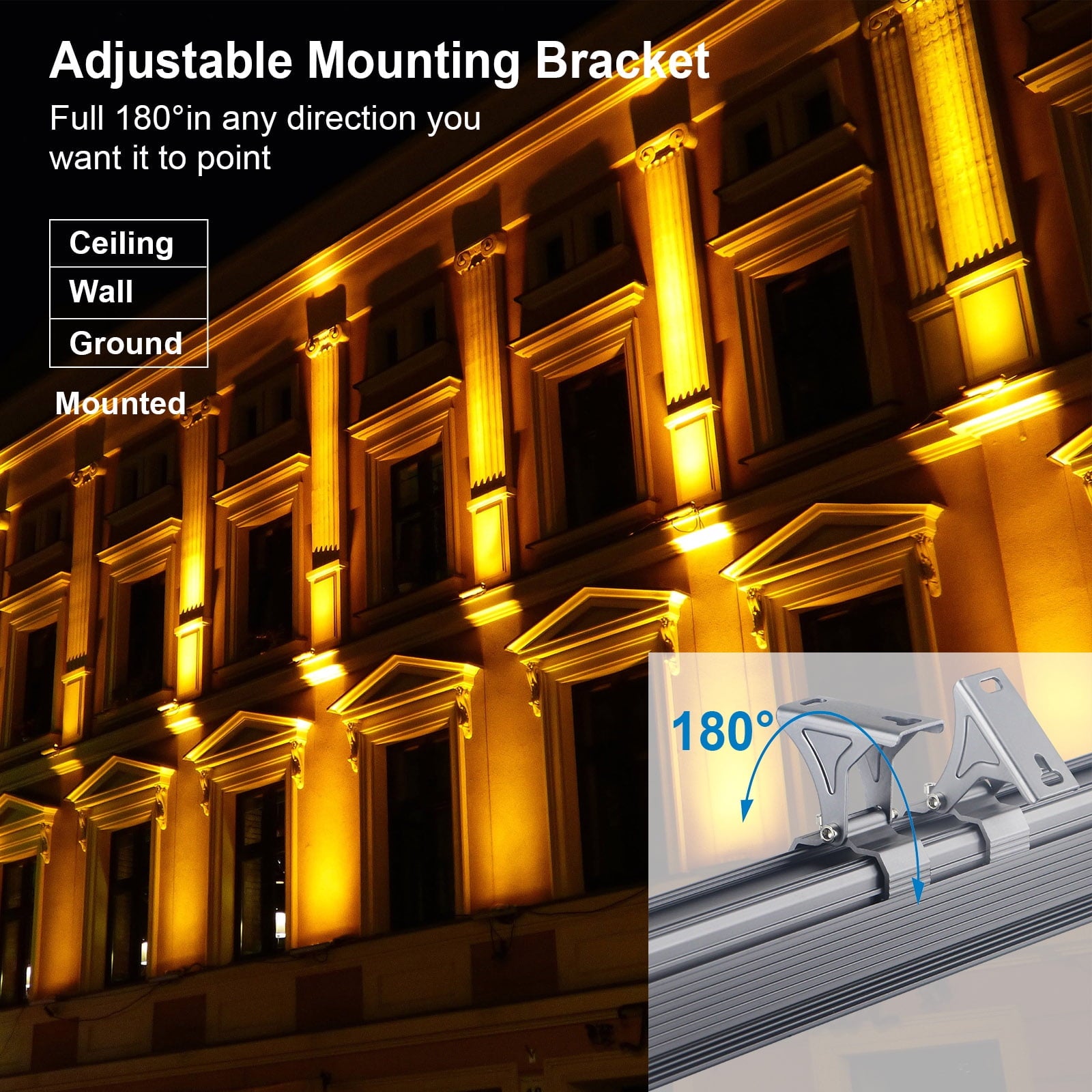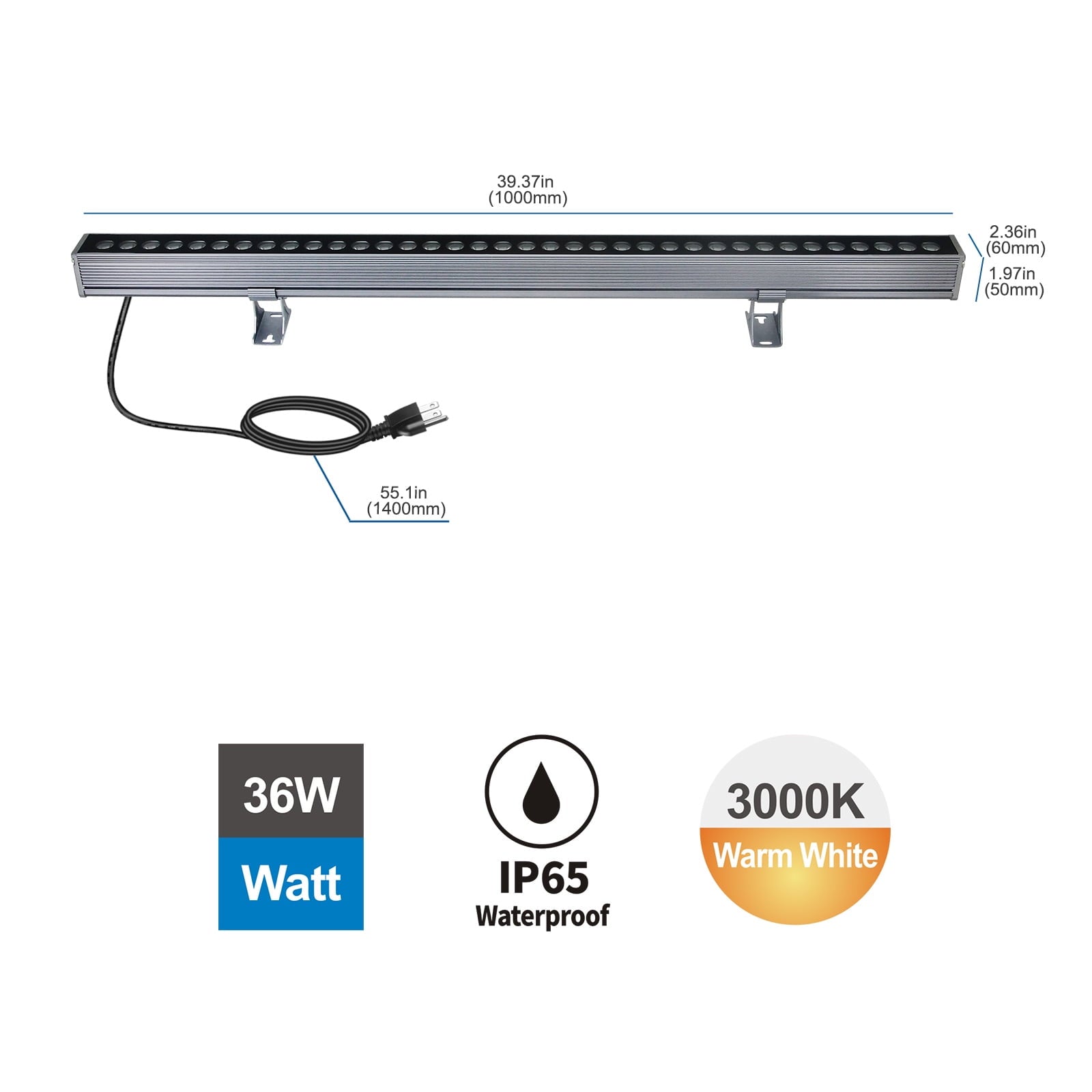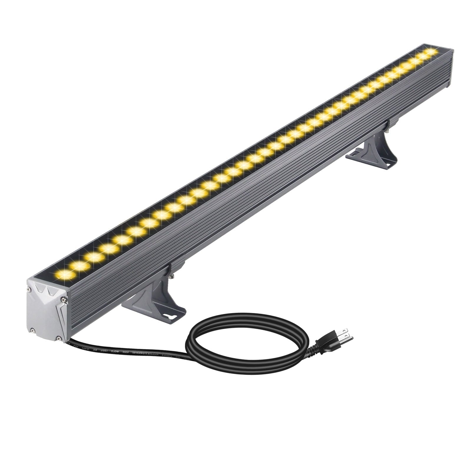 - ☀︎ BRIGHT 5000K DAYLIGHT OR 3000K WARM LIGHT WASH LIGHTING—The Linear LED wall washer lamp emits a daylight output of 4500 lumens and a temperature of 5000K/3000K. The 120V LED light bar is great for illuminating your Outdoor Lighting Ambiance, Patio, Garden, Sign, Backyard, —not only good for security but also brings out vivid colors in a very natural way for your any room.