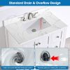- Spill Protection: The built-in 4″ backsplash and overflow sink hole help contain water splashes, keeping your bathroom cleaner and drier.