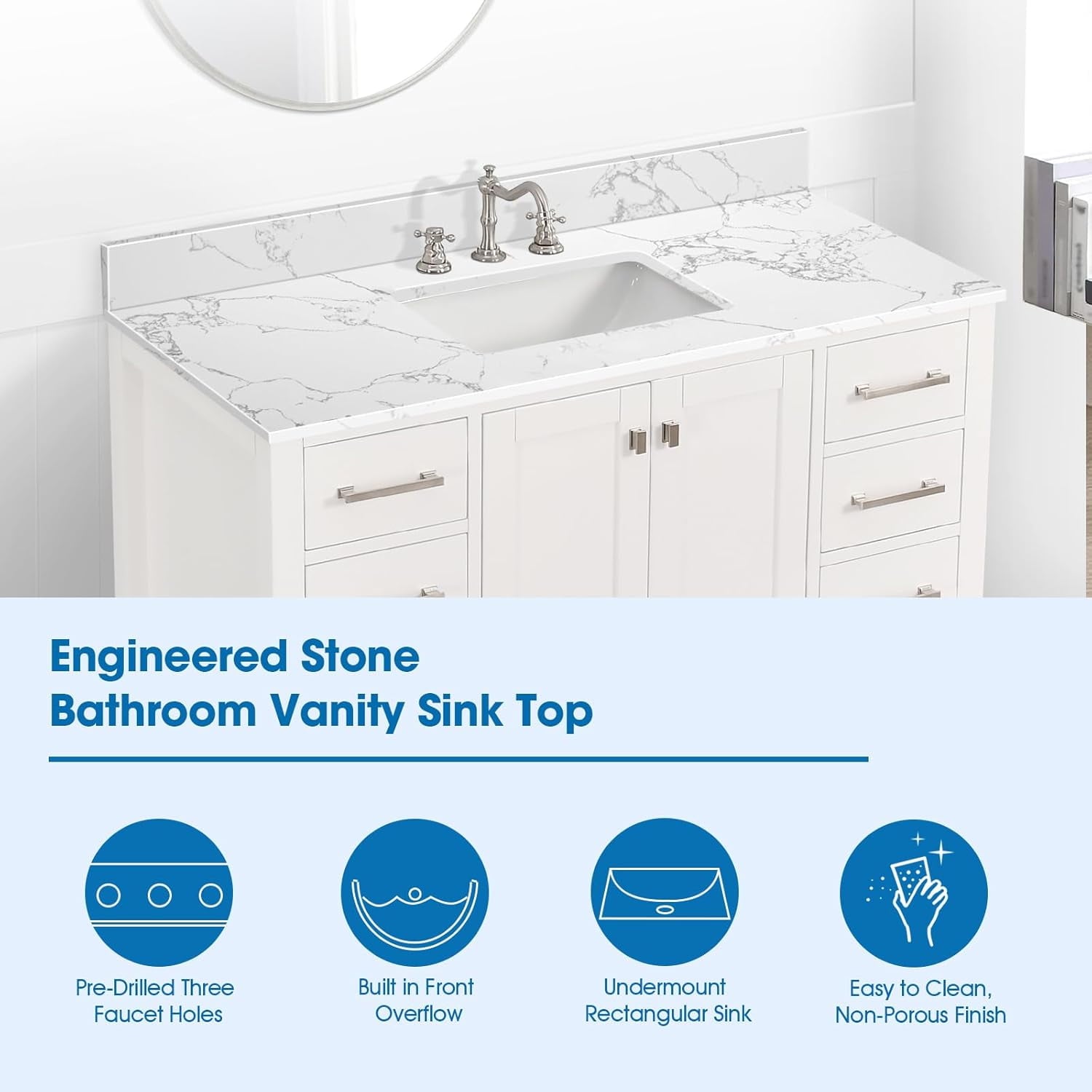 - Luxurious & Durable: Made from high-quality engineered stone, this vanity top combines the elegance of marble with superior strength. Waterproof, scratch-resistant, and easy to maintain for long-lasting beauty.