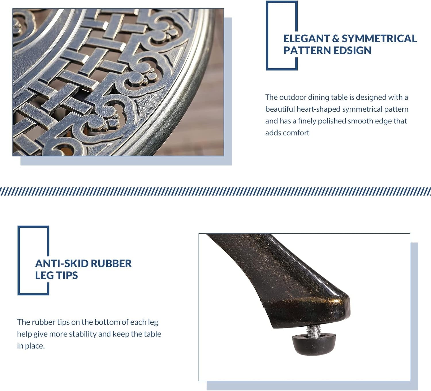 - 【DURABLE CAST ALUMINUM】Made of solid cast aluminum with a rust- and weather-resistant finish, and legs are strong enough to ensure the good capacity. Bring you years of enjoyment