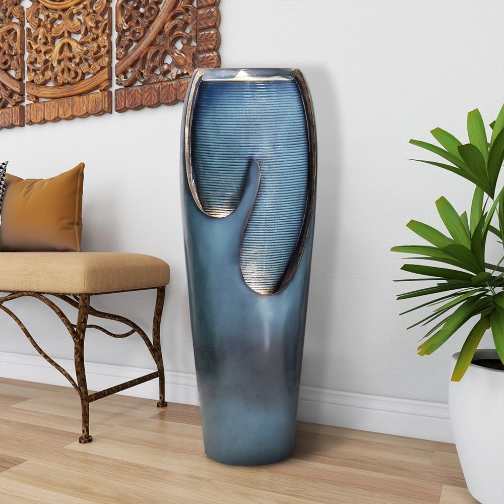 - Garden water fountain with cool LED lights is the perfect addition to your indoor and outdoor decor, and features an interior pump that keeps the water flowing.