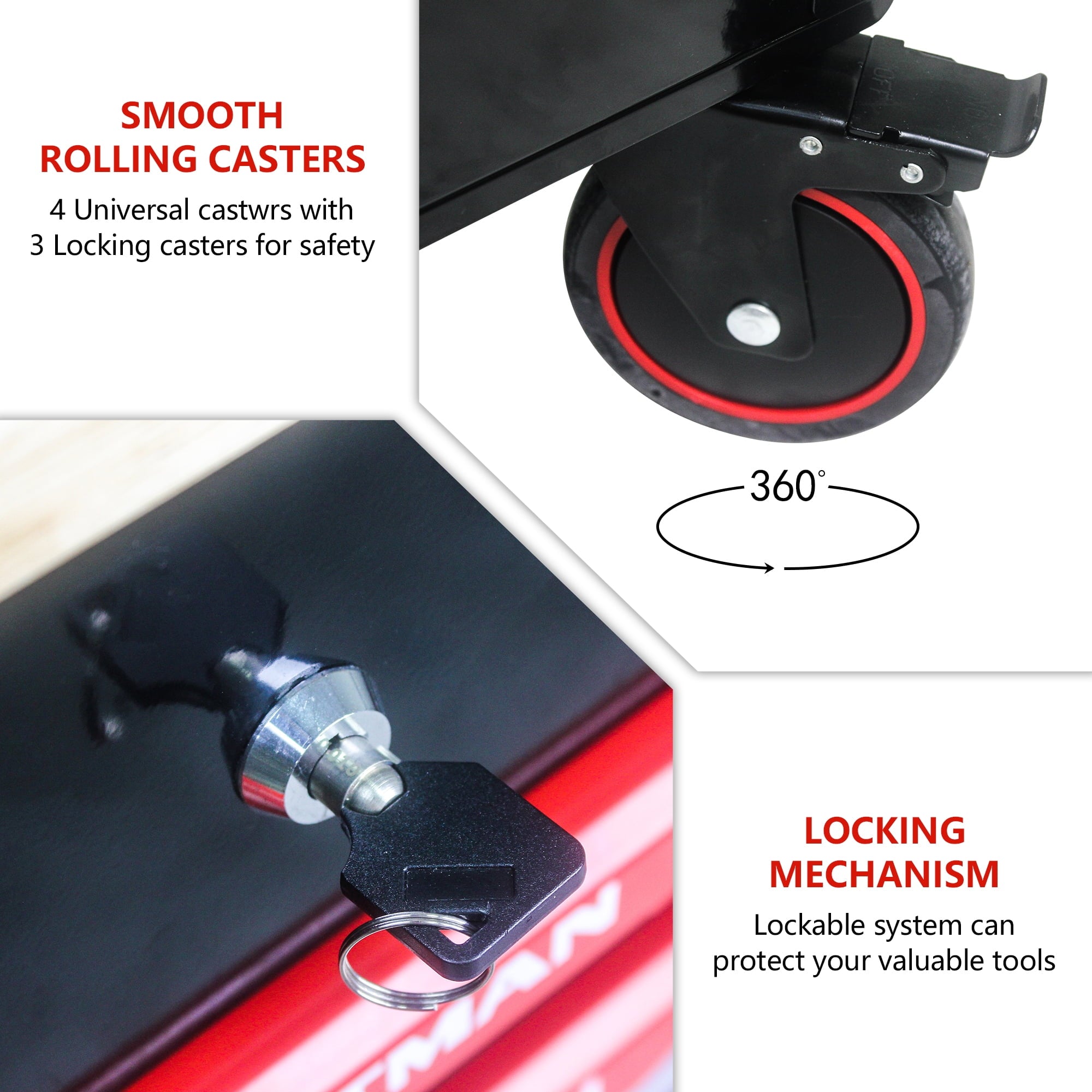 [High Quality Material] The body of this tool box is made of strong and durable steel, and the wheels are made of rubber plastic synthetic material. The long service life is due to the cabinet’s high-quality material selection and solid workmanship, which