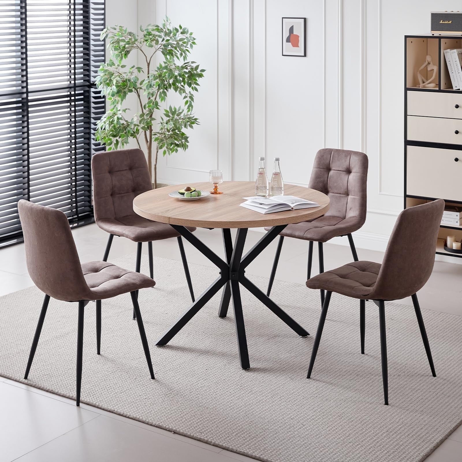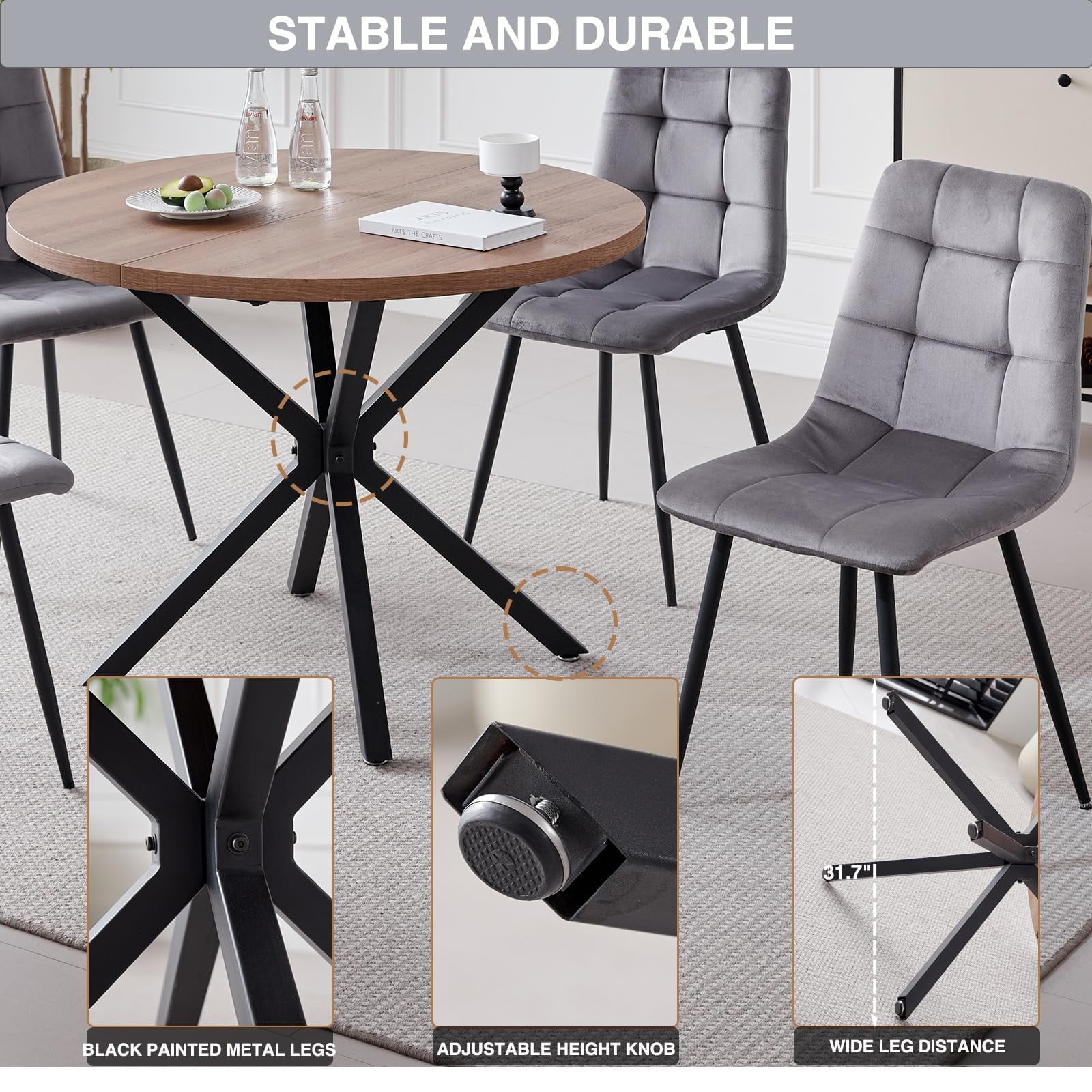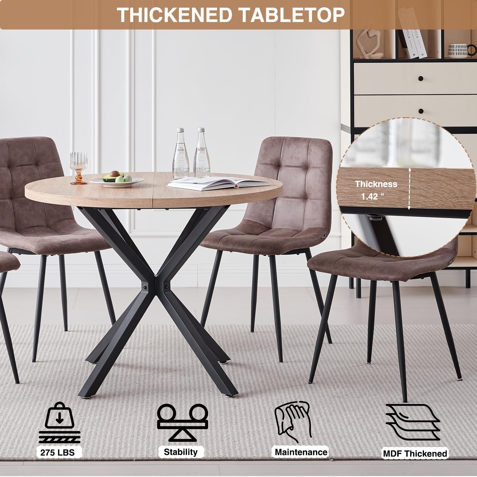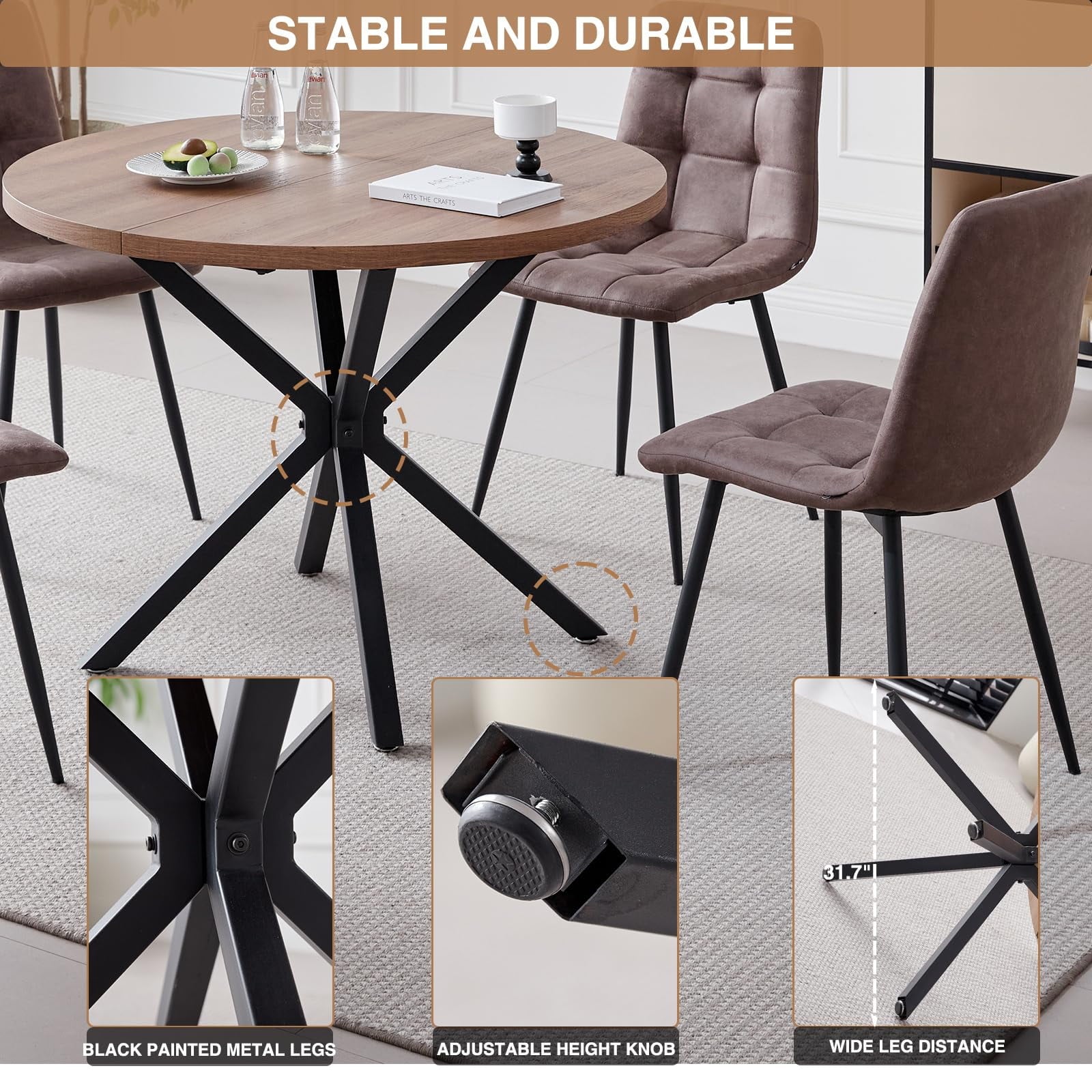 • Perfect for 4-Person – Designed for four-person dining, offering the perfect solution for comfortable and enjoyable meals. The round table, with a diameter of 39 inches, ensures that each diner has ample personal space while fostering an intimate and welcoming atmosphere, making them ideal for both daily family meals and small gatherings with friends.