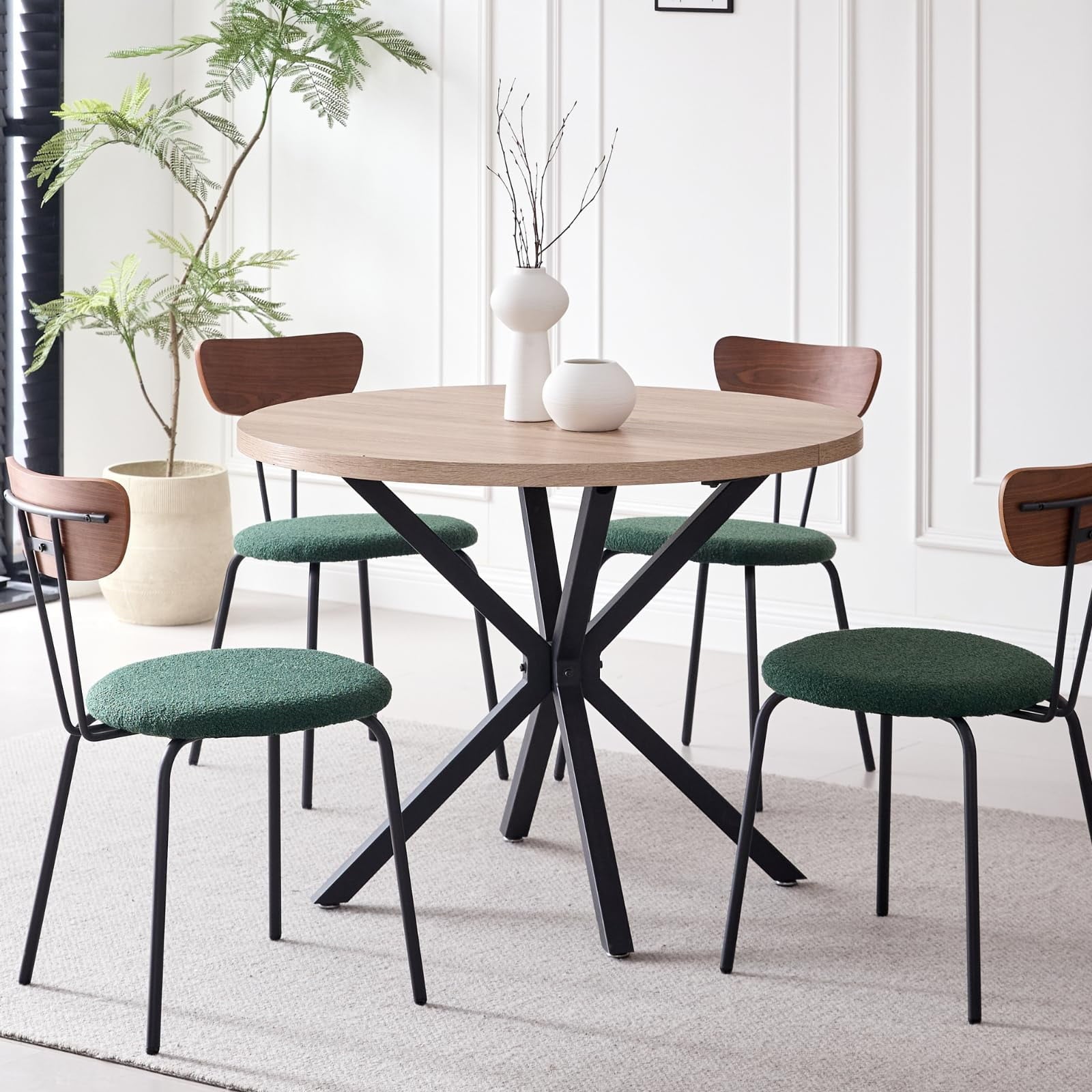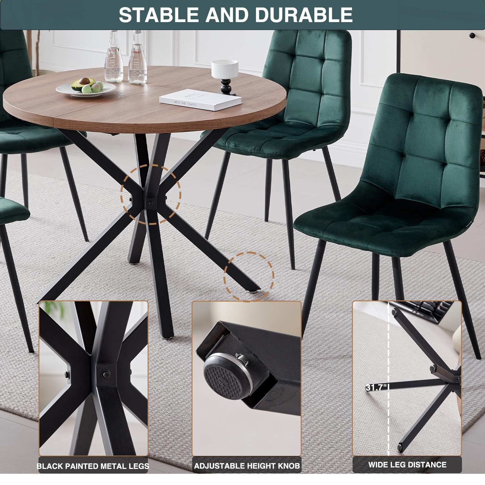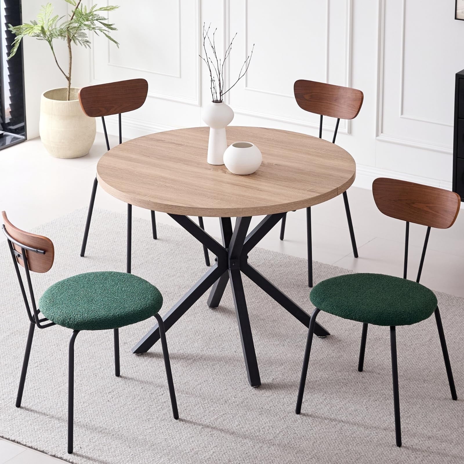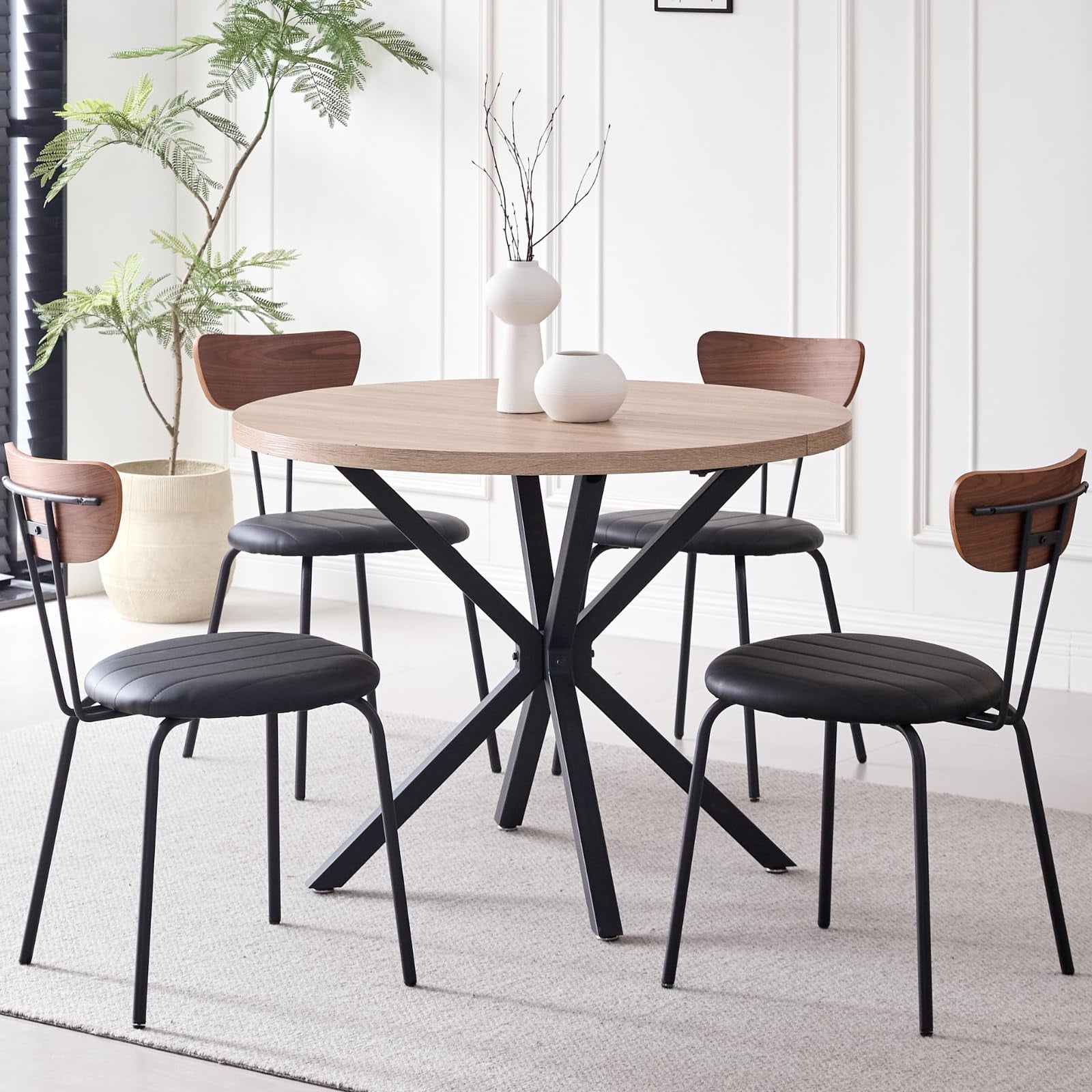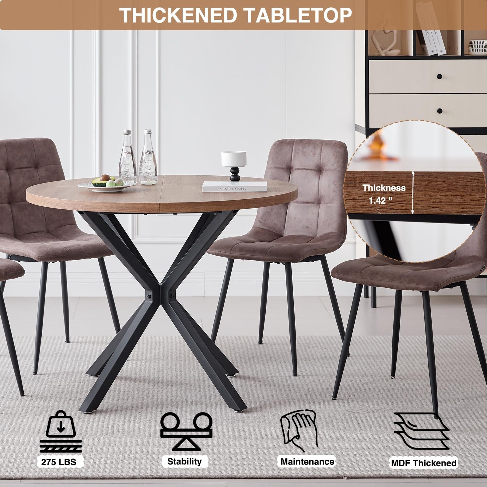 • Perfect for 4-Person – Designed for four-person dining, offering the perfect solution for comfortable and enjoyable meals. The round table, with a diameter of 39 inches, ensures that each diner has ample personal space while fostering an intimate and welcoming atmosphere, making them ideal for both daily family meals and small gatherings with friends.