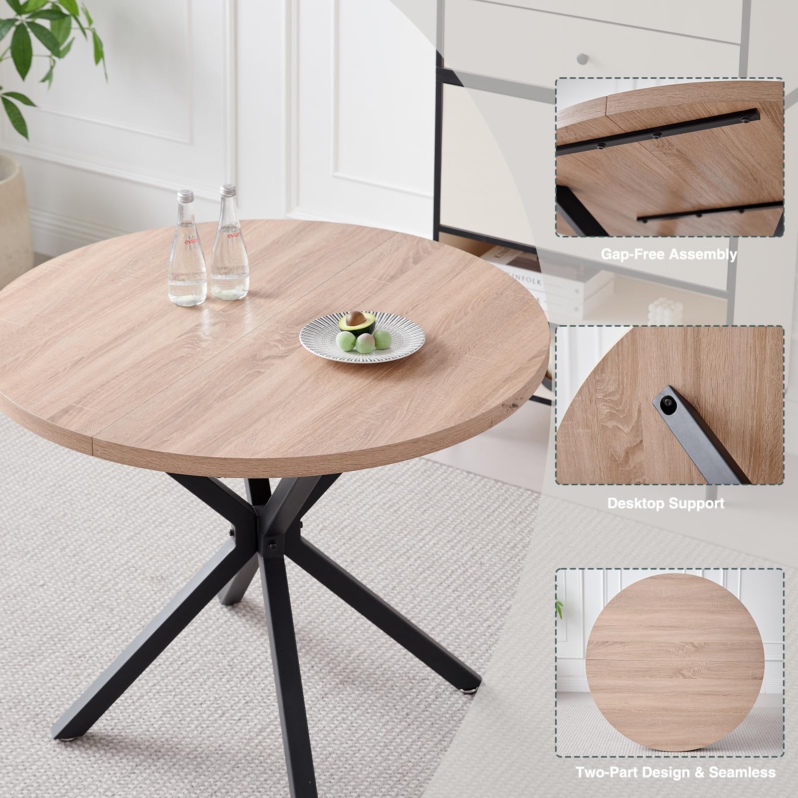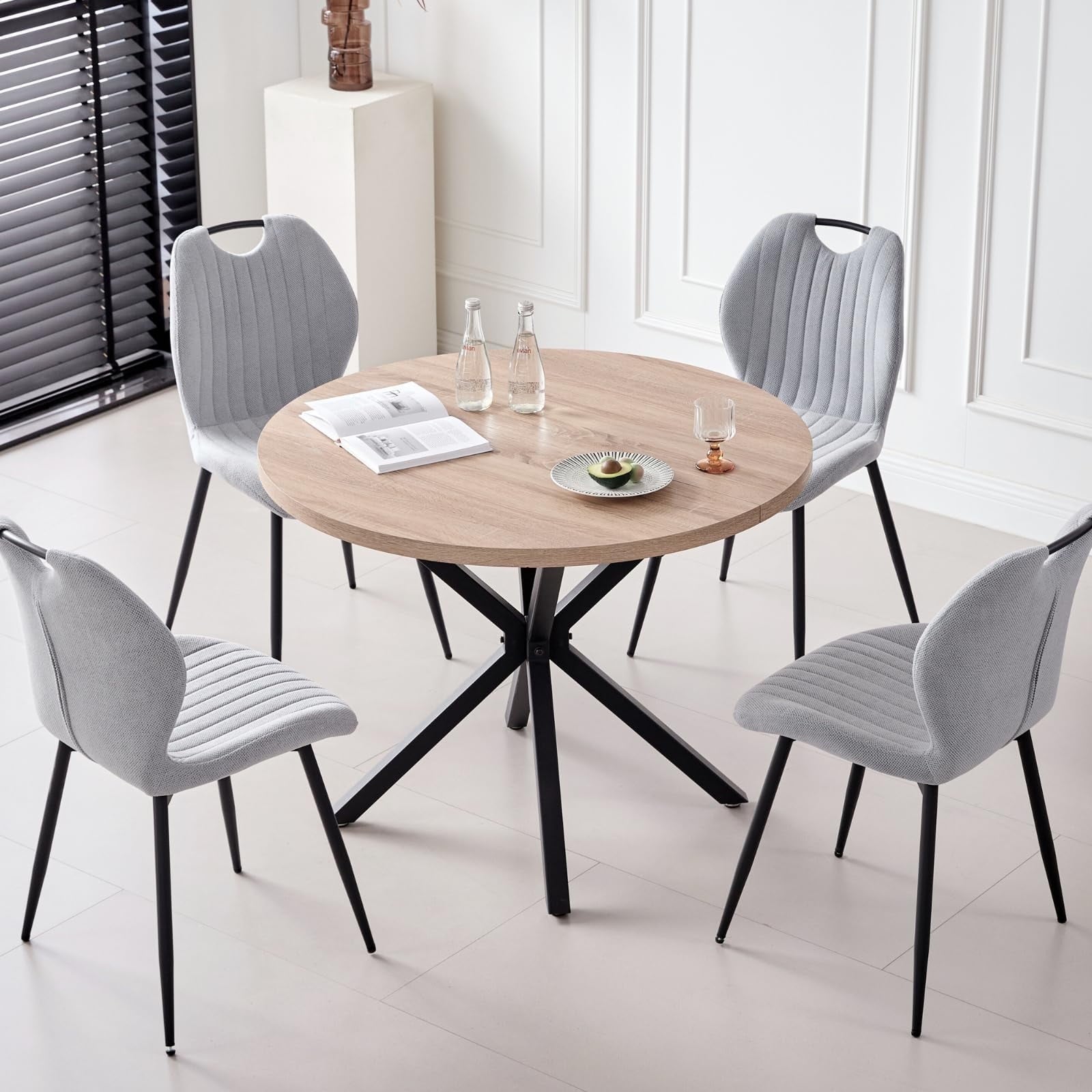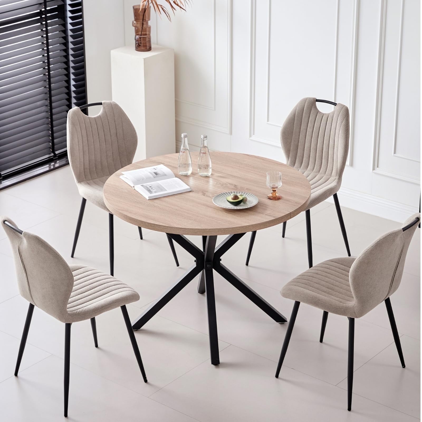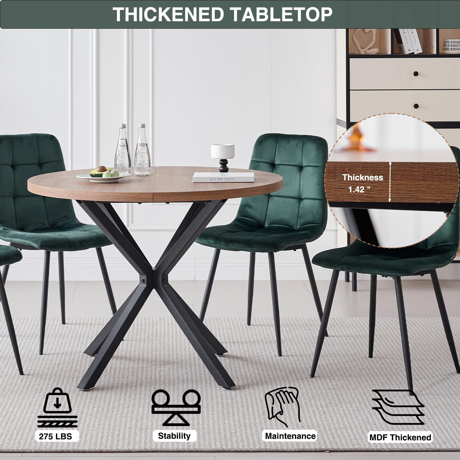 • Perfect for 4-Person – Designed for four-person dining, offering the perfect solution for comfortable and enjoyable meals. The round table, with a diameter of 39 inches, ensures that each diner has ample personal space while fostering an intimate and welcoming atmosphere, making them ideal for both daily family meals and small gatherings with friends.