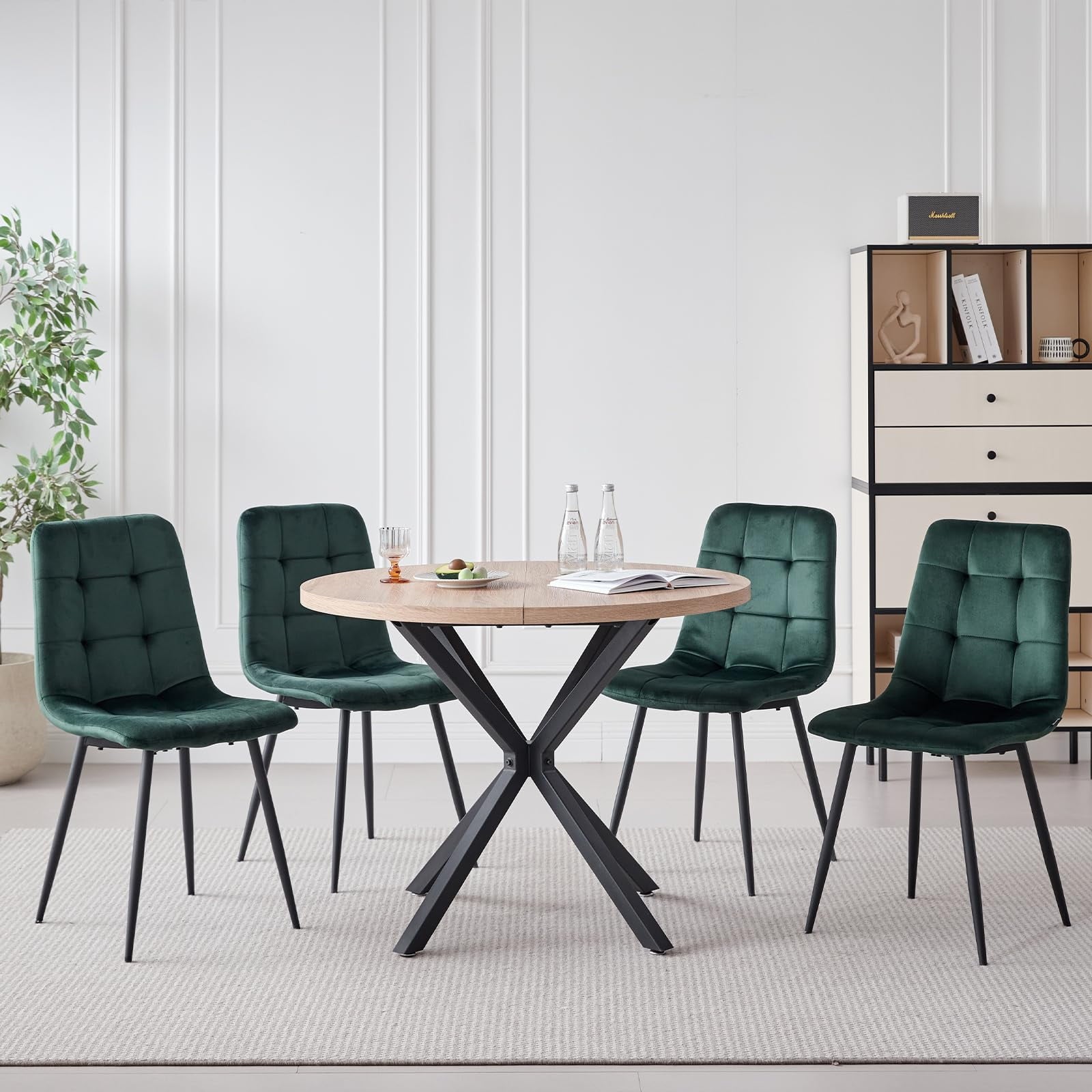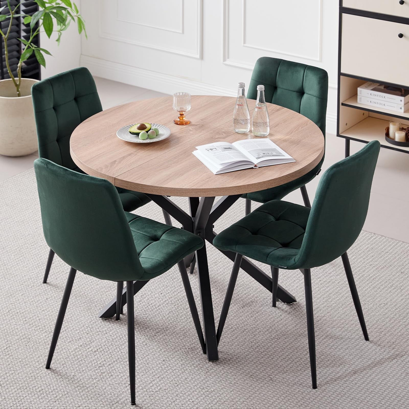 • 1 Natural Table+4 Green Velvet Chairs