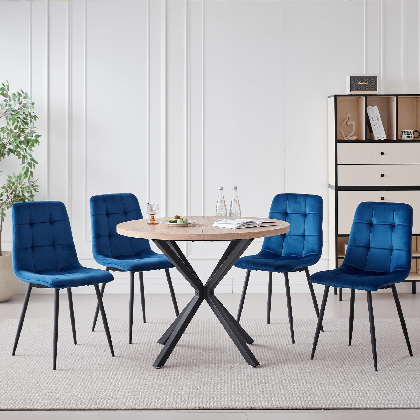 • 1 Natural Table+4 Blue Velvet Chairs