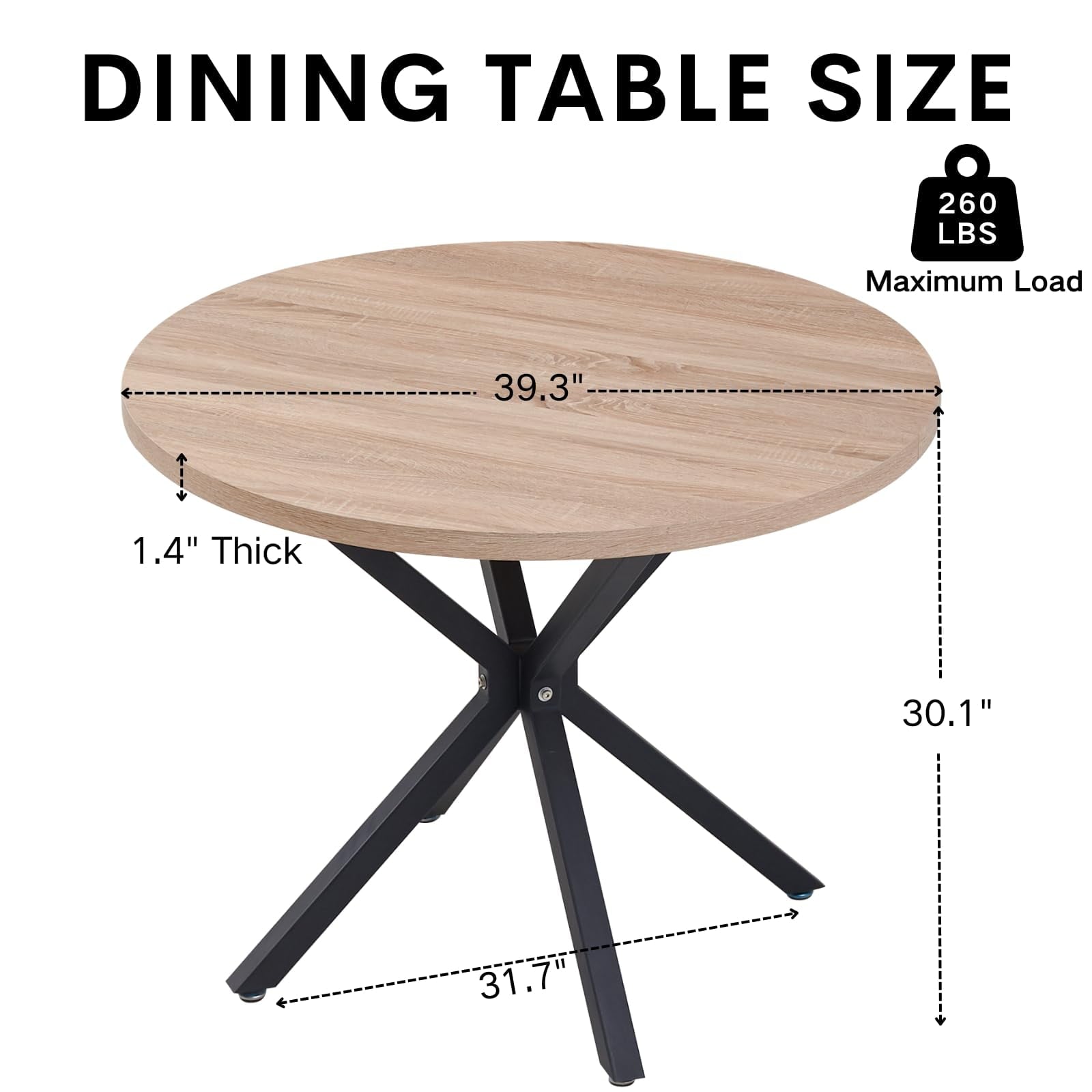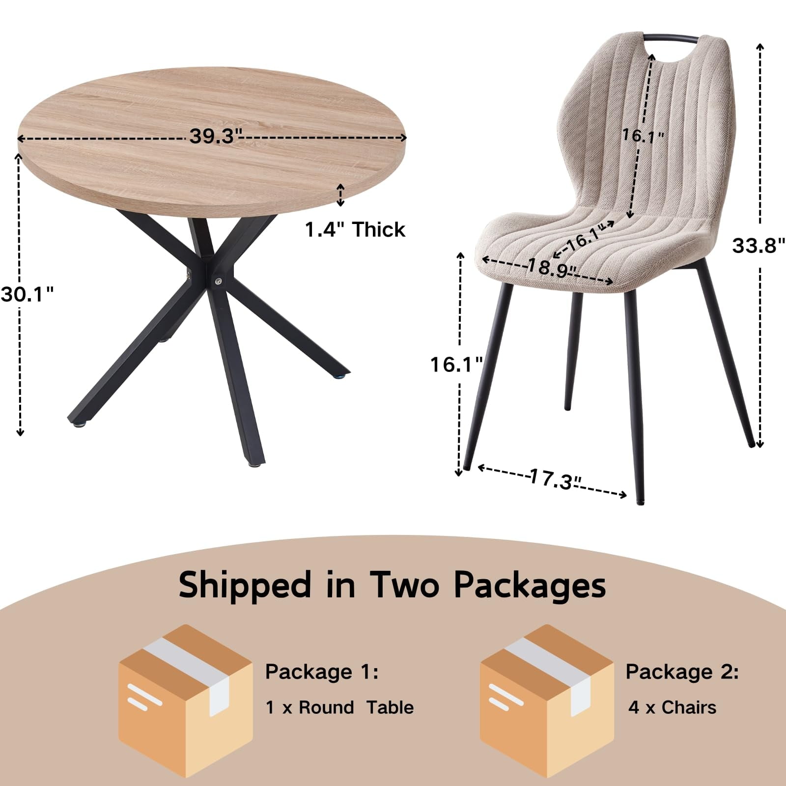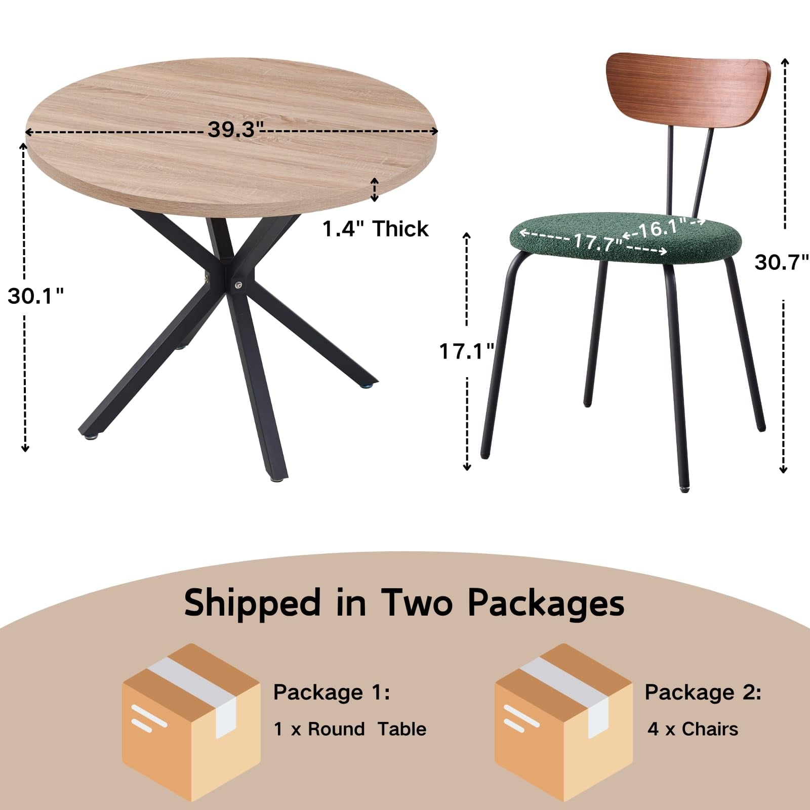 • Ideal Dimensions and Comfort – A round table with a diameter of 39 inches and a height of 30 inches, featuring a tabletop thickness of 1.4 inches. The chairs, with seat dimensions of 17.7″ x 16.1″ and a total height of 30.7 inches, promise comfort whether you’re enjoying meals or working.