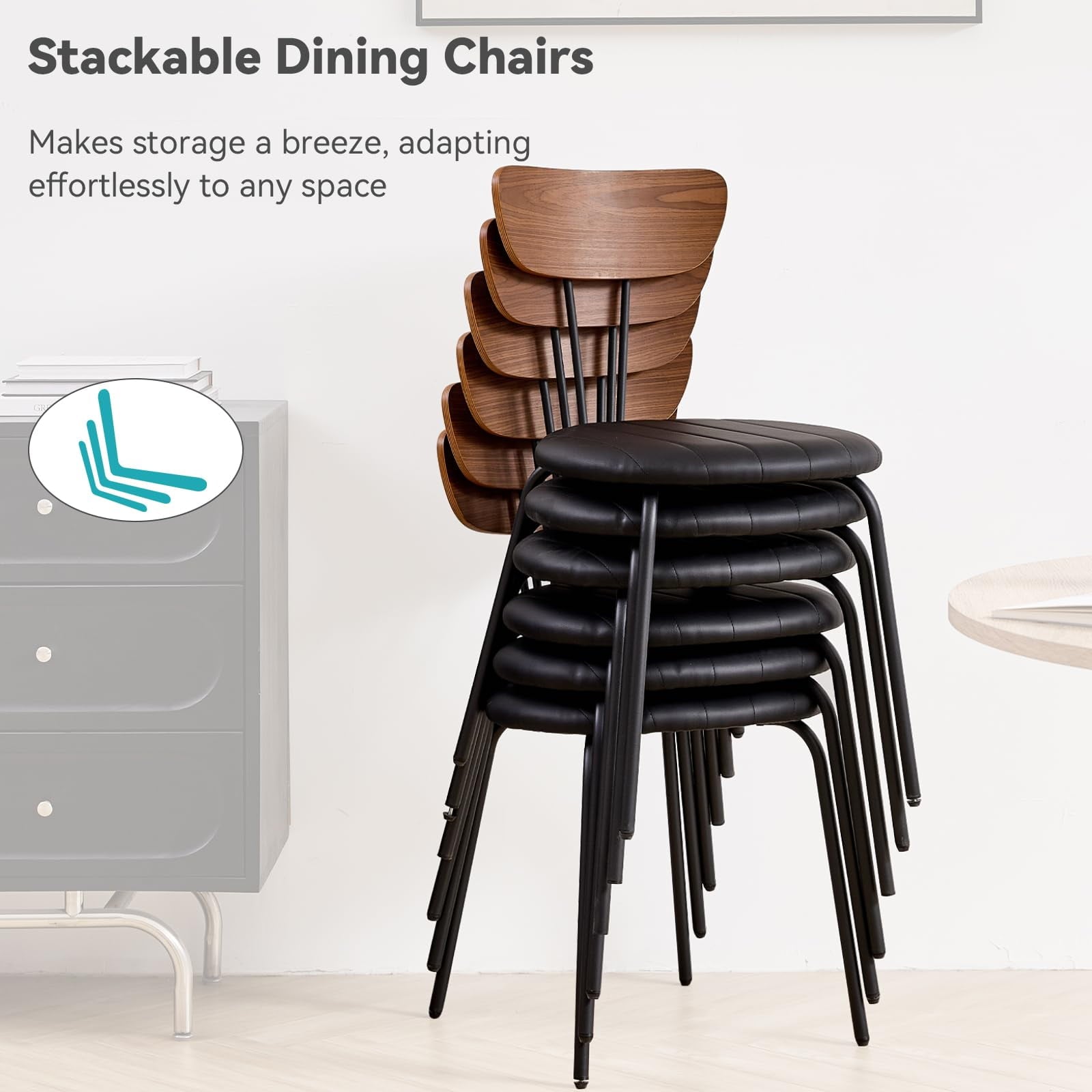 • Space-Saving Design – Designed with modern living spaces in mind, this set focuses on saving space. The chairs can be easily stacked together when not in use, significantly reducing the storage footprint and keeping your home tidy and organized.