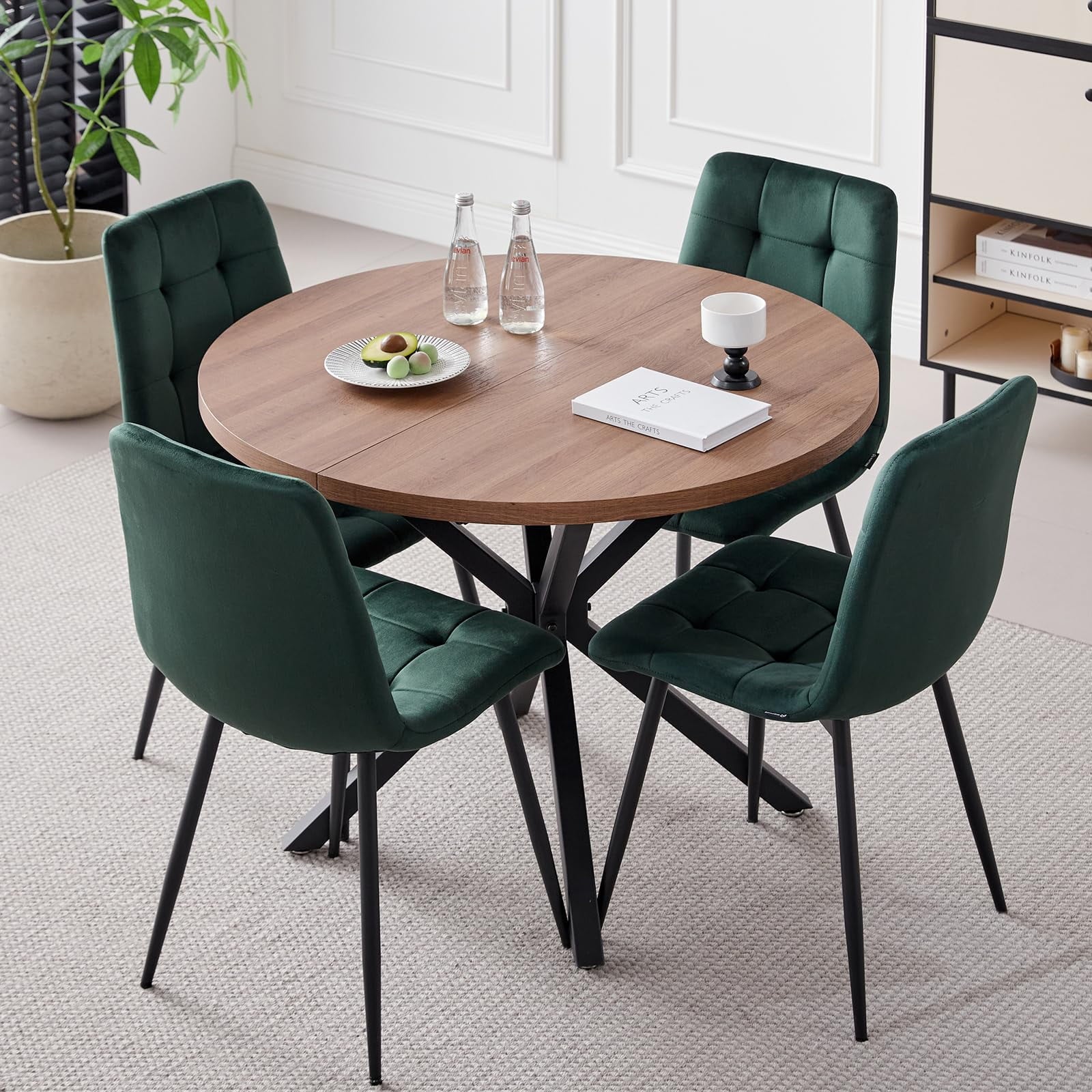 • 1 Brown Table+4 Green Velvet Chairs